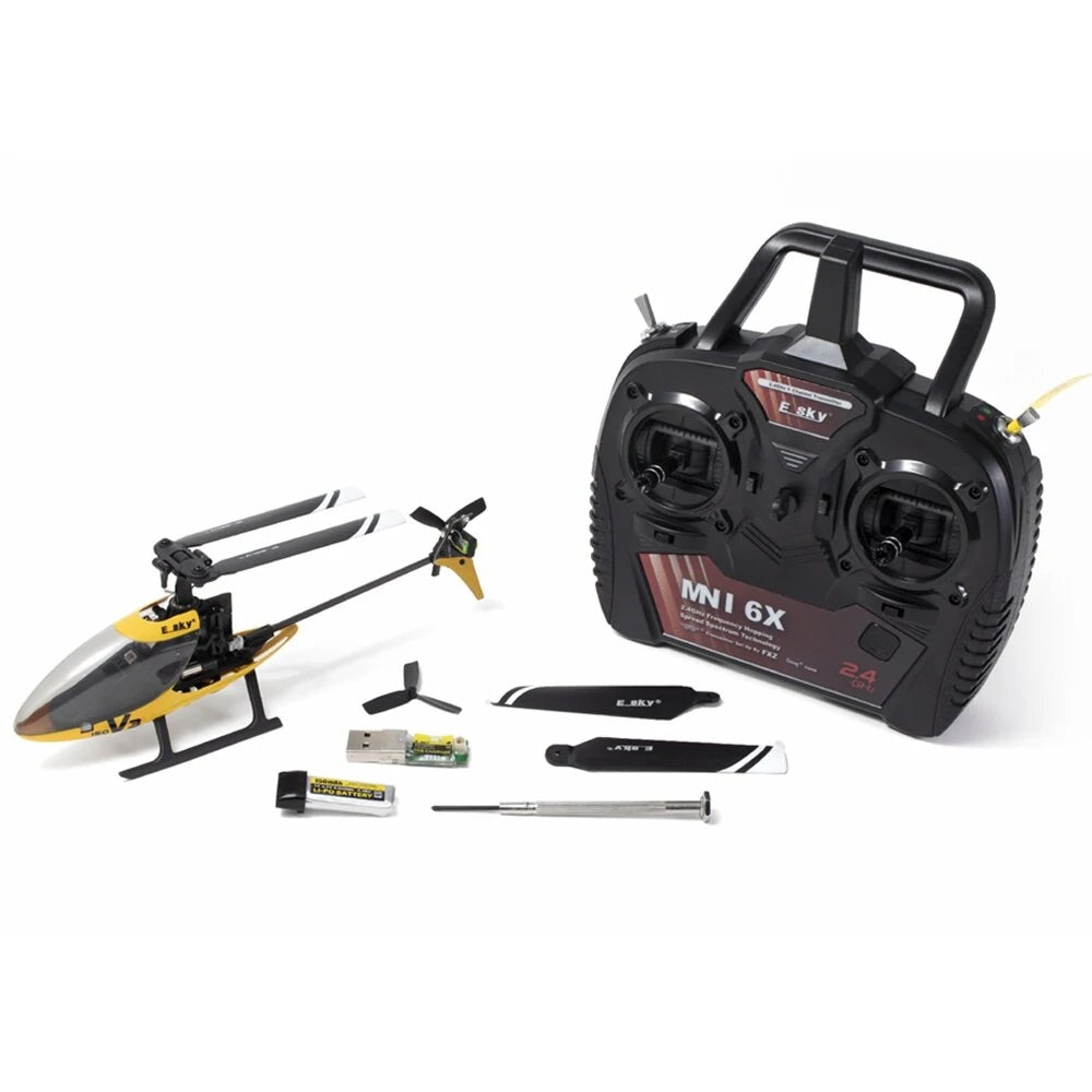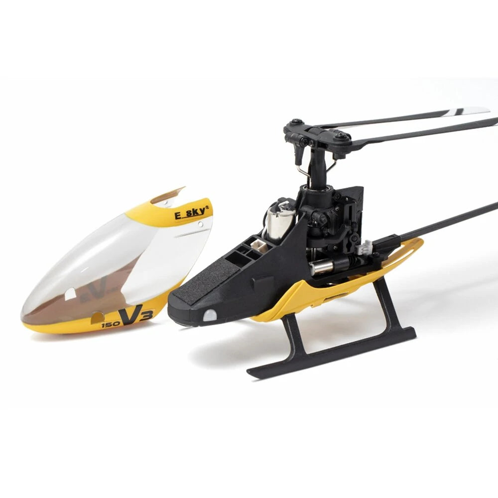 Start learning the single rotor helicopter flying with the Esky 150 V3. The fixed pitch, flybarless design of the Esky 150 V3 is equipped with the 6 DOF FXZ control system, contains an altitude hold feature and allows the helicopter to maintain a constant altitude and provides unmatched stability. With the V3 series, you can move from coaxial helicopters and multi-rotor drones to single-rotor helicopters.