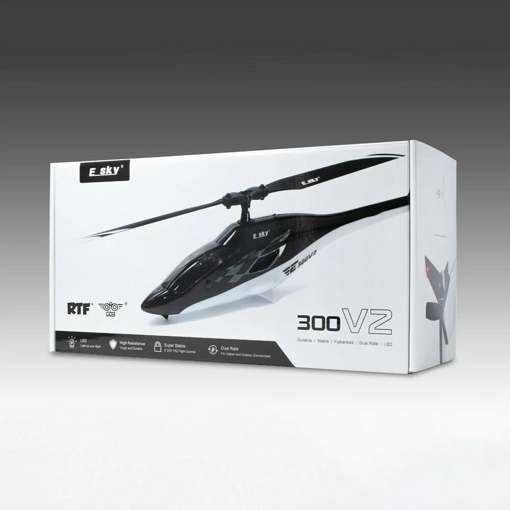 The ESKY 300 V2 is the perfect indoor and outdoor Helicopters for any beginner pilot who ready to try single-rotor machines from coaxial helicopters and multirotor drones. Its fixed-pitch, simple rotor head and 6 DOF FXZ control system lets you enjoy high-level of stability and efficiency even in outdoor environment. Even experienced single-rotor pilots will find the ESKY 300V2 is much greater to have around whenever time, place or weather keeps you from flying a bigger helicopter.