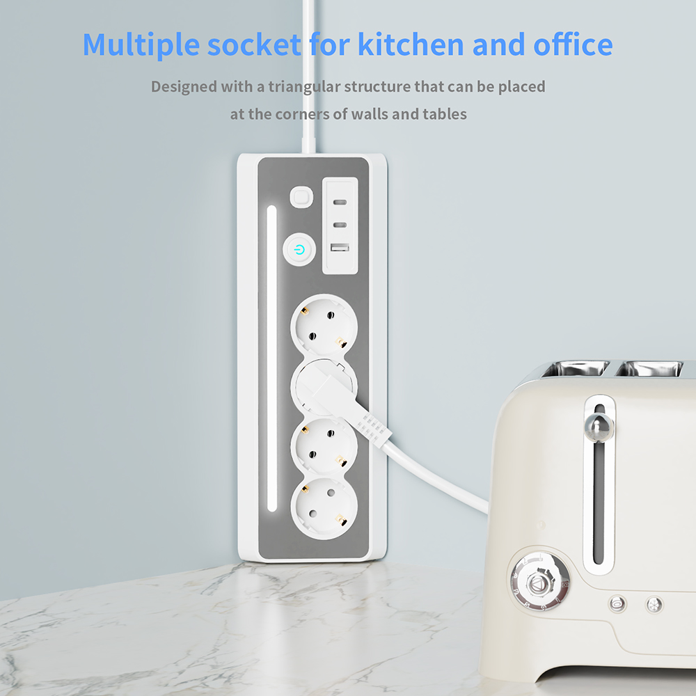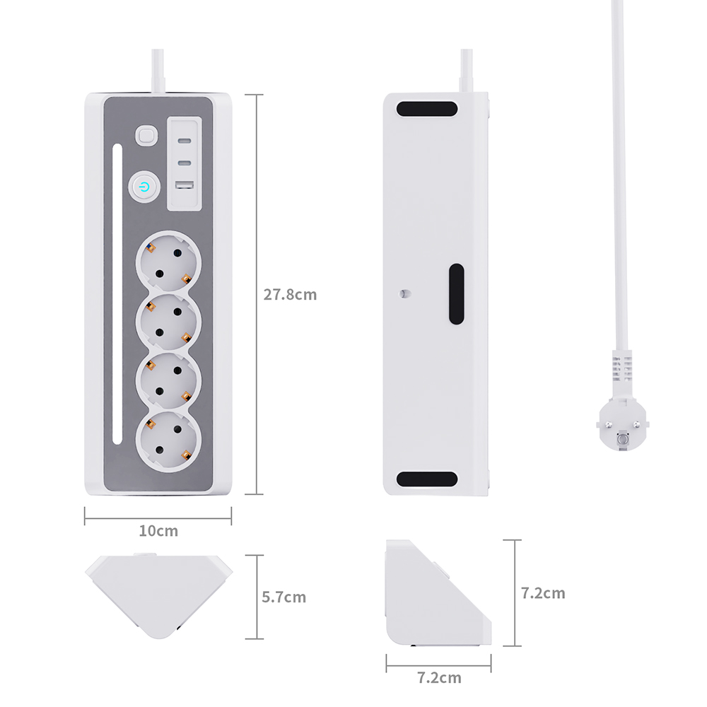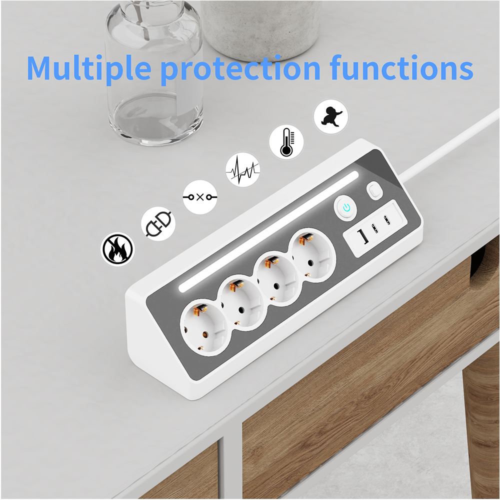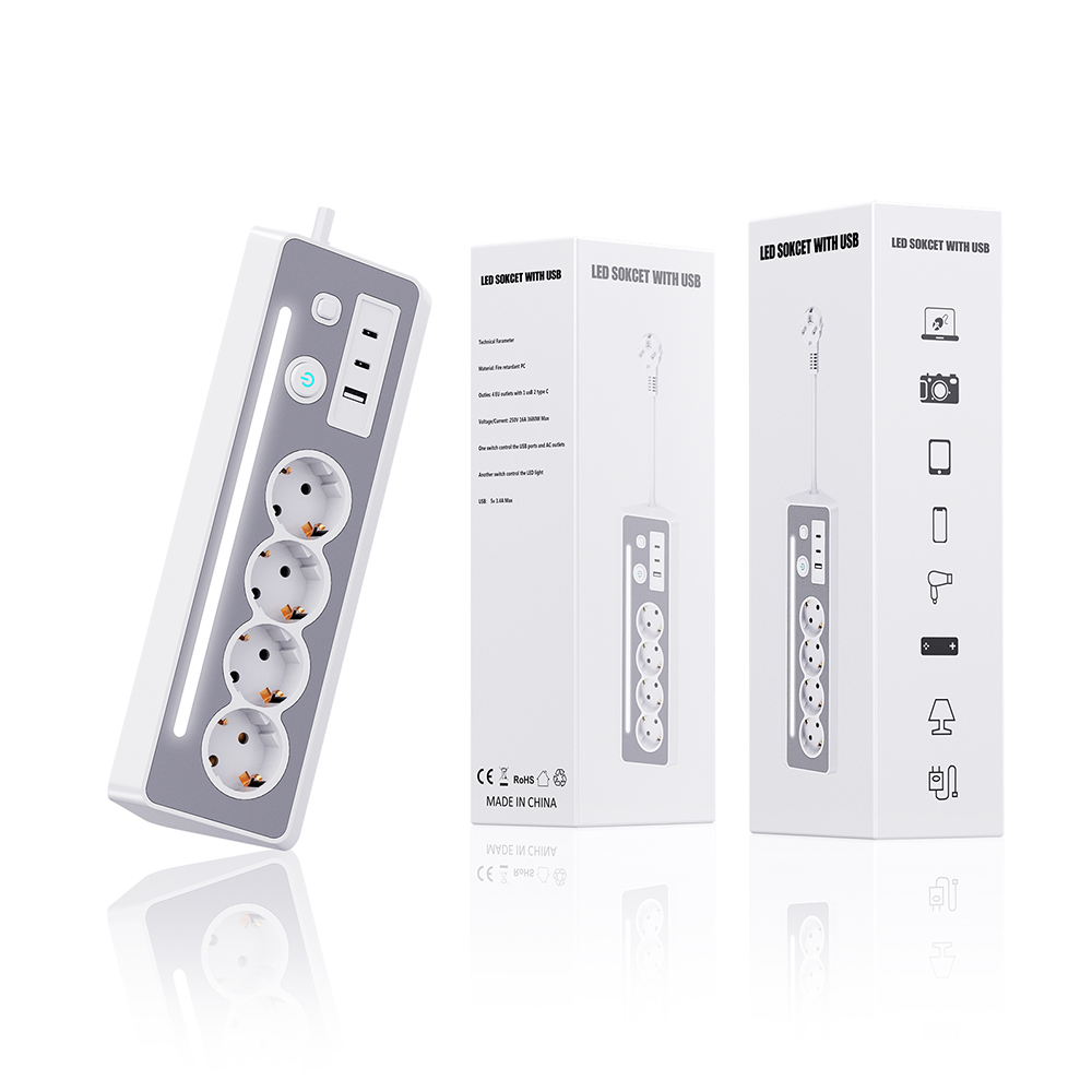 Socket: 4 European sockets with 1 USB + 2 Type-C ports
