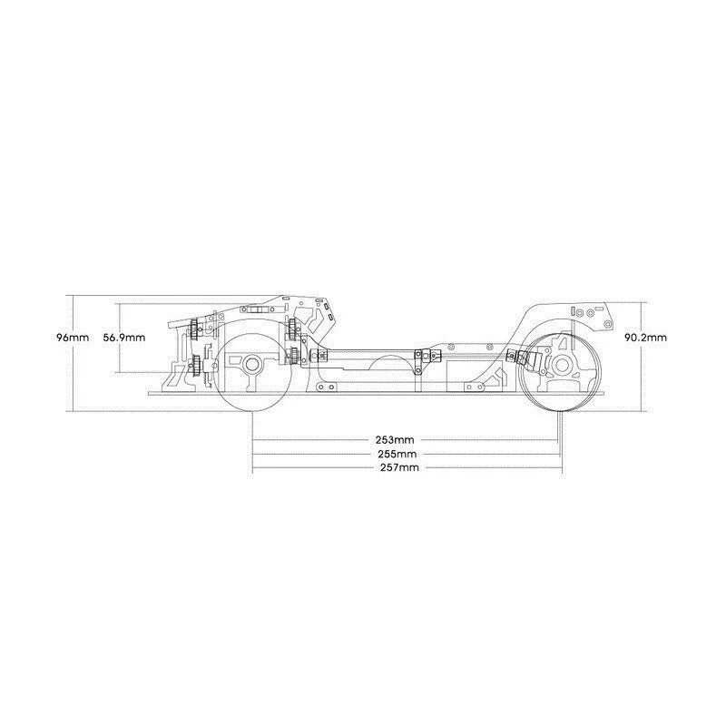 Designed from the ground up to realistically mimic a real drift car, the belt drive's front motor and shock absorbers replicate the settings of a real car. With an inward (0-5°) and backward (3-8°) tilt angle, the independant shock absorbers can be set however you choose.