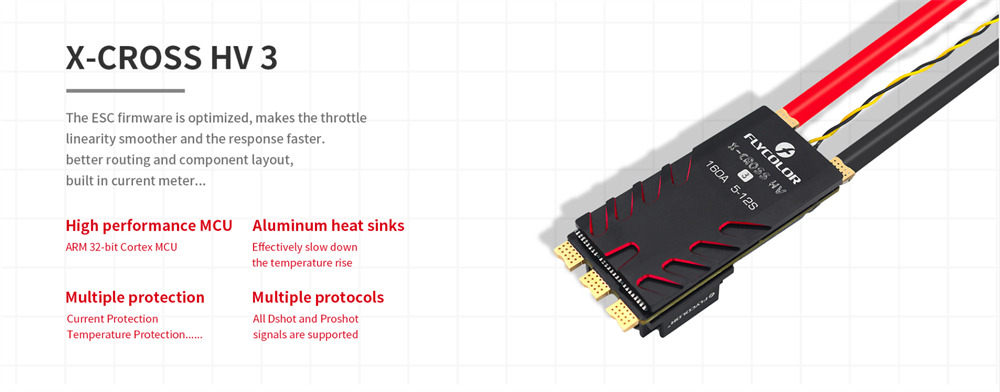 4. Supports pulse width input of common PWM throttle mode (1-2ms), Oneshot125 (125-250us), Oneshot42 (41.7-83.3us) and Multshot (5-25us); supports all Dshot and Proshot digital signals.