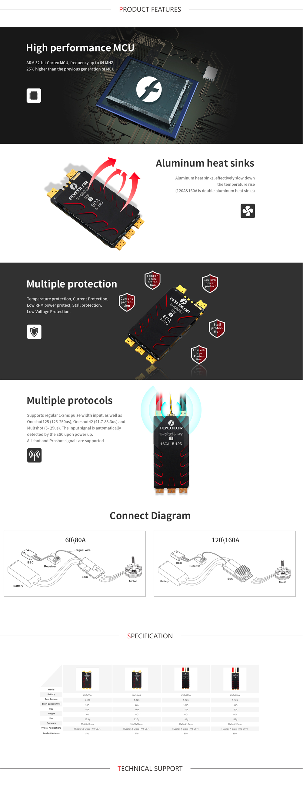 3. Multi-protection system safeguards against temperature, current, low RPM, stall, and low voltage.