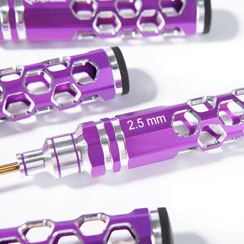 Screwdrivers repair tools for RC cars/boats/drones/helicopters and other hobby RC model vehicles.Includes commonly used 1.5mm 2mm 2.5mm hex screwdrivers, and 8.0Box hex nut driver.Precision CNC machined, high strength, metal tips, rustproof and strong.Specification: