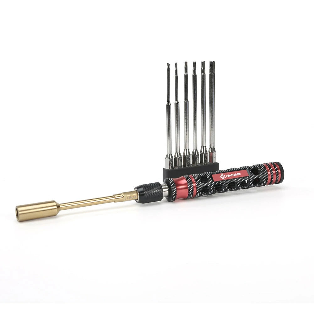 This 7 in 1 Hex/Phillips driver kit basically meets your fpv build and repair needs.It is small and easy to carry.Specification:Brand:FlyFishRCProduct:7-in-1 FPV Hex screwdriver KitSize: H1.5/H2.0/H2.5/H3.0/H4.0/8.0Box/PH1.0Handle body length: 122mmOverall length:209mmWeight(Whole Set): 147.2gIncluded:1x 8.0mm Nut Driver for M5 nut1x 1.0mm Cross Screw driver1x 1.5mm Hex Screwdriver1x 2.0mm Hex Screwdriver1x 2.5mm Hex Screwdriver1x 3.0mm Hex Screwdriver1x 4.0mm Hex Screwdriver1x Plastic Case