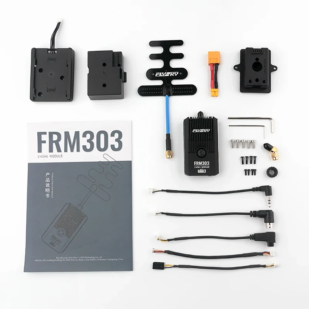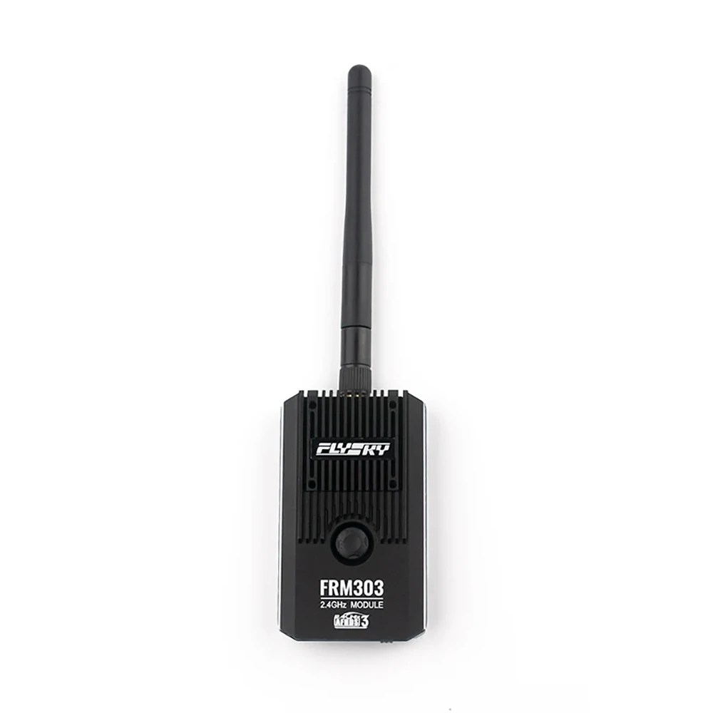 FRM303 is a multi-function high performance RF module in compliance with the AFHDS 3 third generation automatic frequency hopping digital system protocol. It features an external replaceable single antenna, support of bi-directional transmission, three power supply methods, support of voltage alarm function in case of external power supply, and support ofinputting PPM, S.BUS and UART signal.