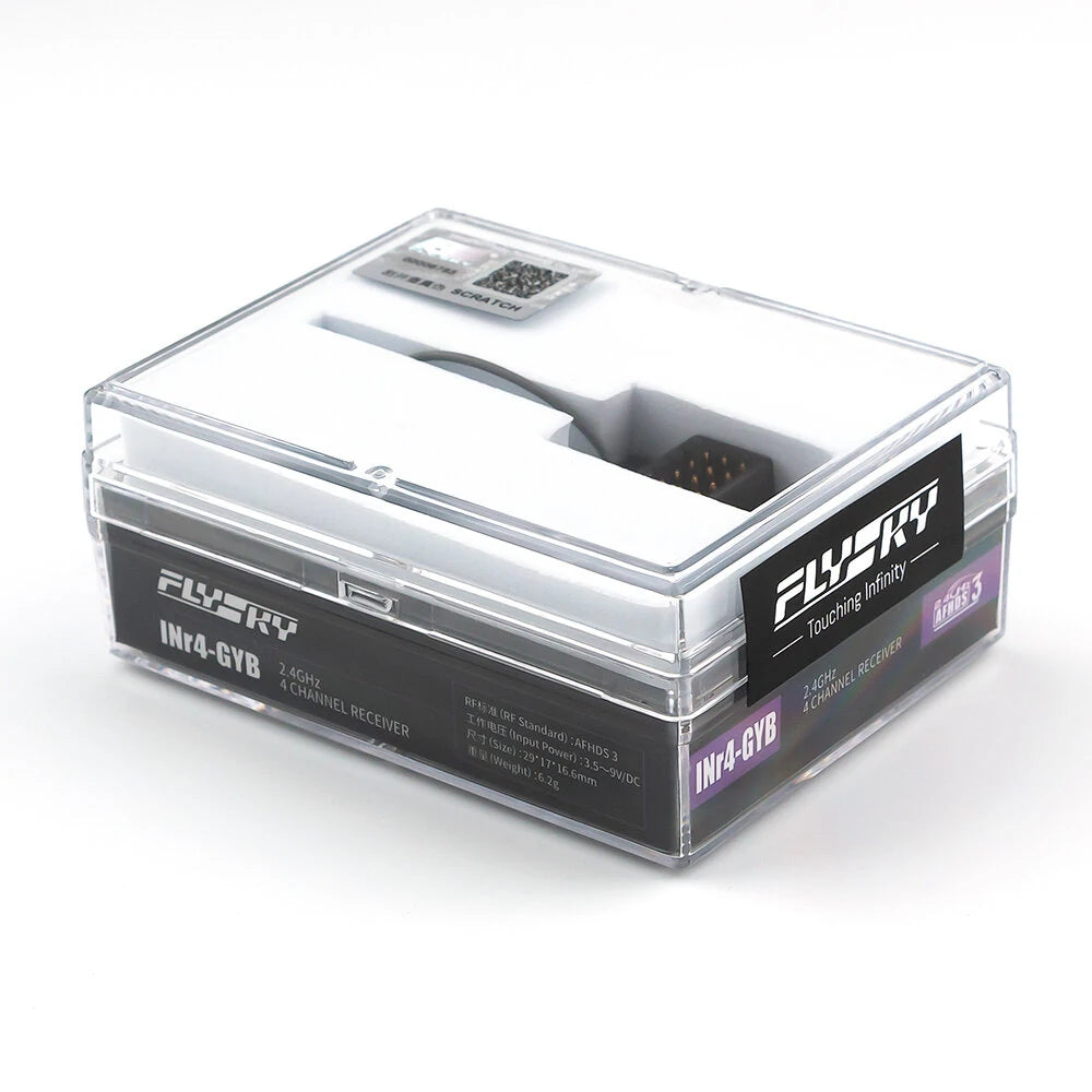 The INr4-GYB receiver adopts Flysky's third-generation automatic frequency hopping digital system (AFHDS 3). It uses a single-antena bidirectional transmission system, built-in high-performance gyroscope, PPX6 splash-proof, Support battery volatage detection, fully adaptable to drift/entertainment/F1/linear acceleration cars. It supports 4 Newp0rt function interfaces (Newp0rt interface can be customized with the input or output signal type: i-BUS2/S.BUS/i-BUS/PPM, etc.) It adapts transmitters which support AFHDS 3 protocol (Note: Currently only the Noble series can enable the INr4-GYB gyroscope function).