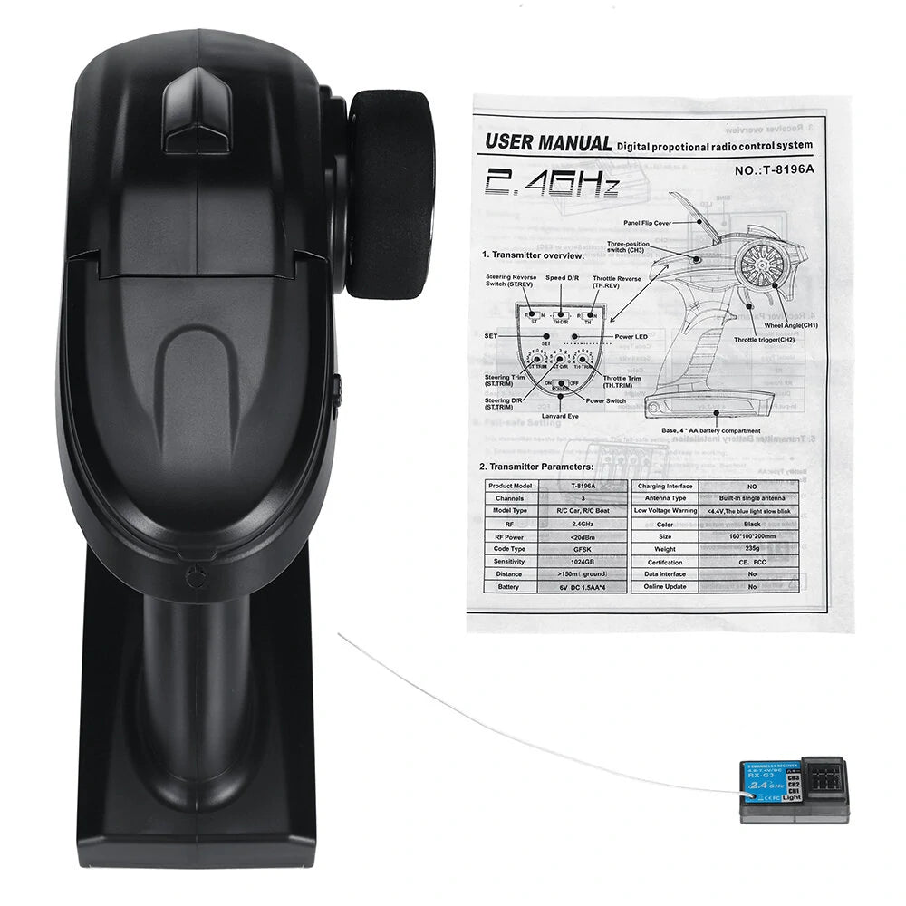 FLYUEACE T-8196A 2.4GHz 3CH Light Group Transmitter with RX-G3 Receiver for RC Car Boat Tank