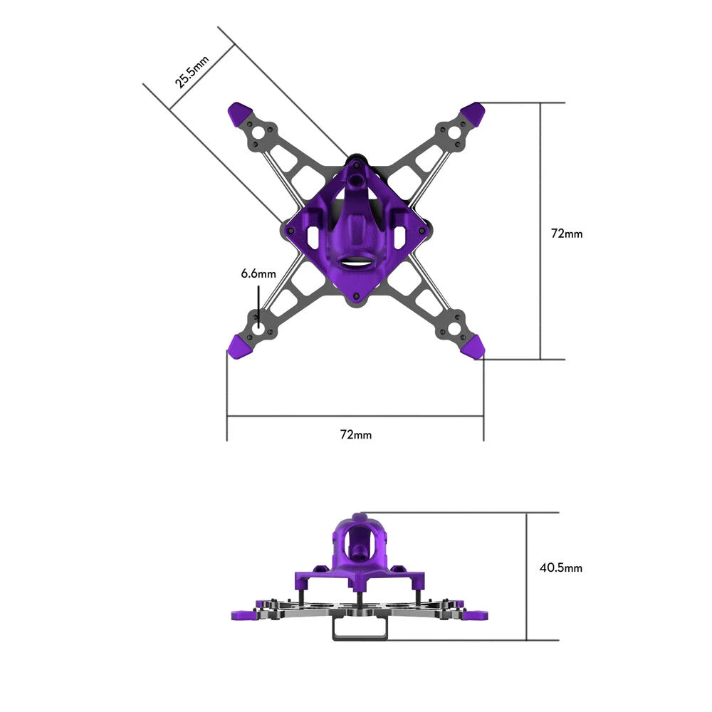 Main Board Thickness: 2mmFlight Control Hole Position: 25.5x25.5mmMotor Position: 6.6mmPropeller Size: 40mm x3 (16 ) / 45mm x2 (18)Weight: 7.9g(16) / 8g(18)