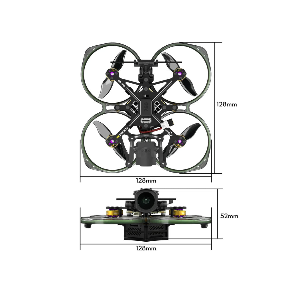 FLYLENS 85 brushless whoop is an innovative small drone carefully crafted by the FLYWOO team that meets international regulations.It adopts the latest O4 digital transmission system and is available in an optional O4 version, making it the lightest O4 2-inch drone on the market. The carbon fiber frame has undergone a special carbon black treatment process. The reverse push propeller structure increases power, reduces noise, and easily adjusts the battery's center of gravity position.Highlights:-- Small size, lightweight, less than 100g, lightweight 2-inch drone.-- O4 digital transmission system, long-distance, 4K high-definition, low latency-- High-strength PC injection-molded protective ring enhances the strength and safety of the drone.-- Unique CNC damping platform for camera, no jelly effect, records high-quality video-- Quick-detachable frame for easy separation of parts.-- Reverse push propeller power for stable flight and longer endurance.-- Equipped with wireless control neon light strip and can carry external devices.