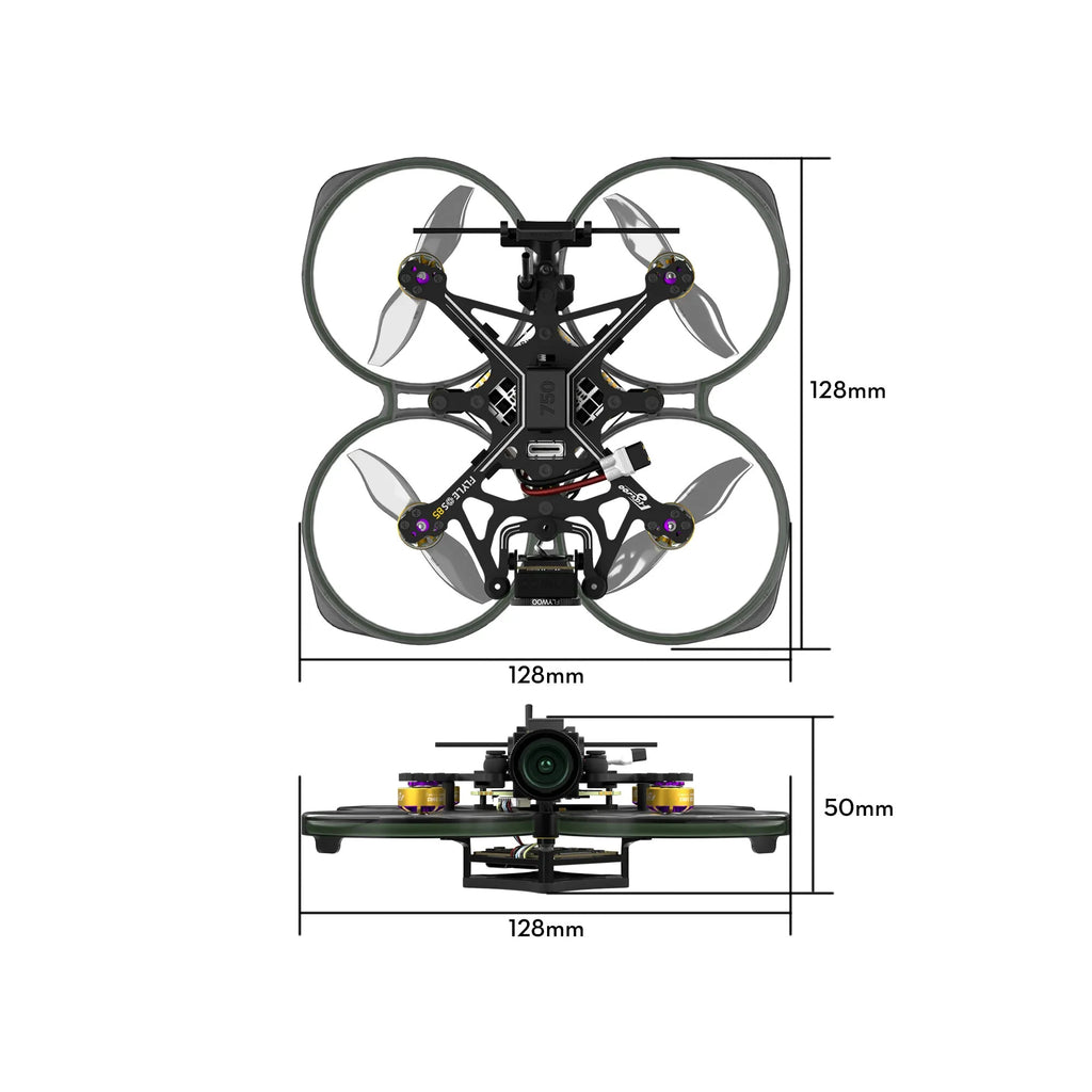 FLYLENS 85 brushless whoop is an innovative small drone carefully crafted by the FLYWOO team that meets international regulations.It adopts the latest O4 digital transmission system and is available in an optional O4 version, making it the lightest O4 2-inch drone on the market. The carbon fiber frame has undergone a special carbon black treatment process. The reverse push propeller structure increases power, reduces noise, and easily adjusts the battery's center of gravity position.Highlights:-- Small size, lightweight, less than 100g, lightweight 2-inch drone.-- O4 digital transmission system, long-distance, 4K high-definition, low latency-- High-strength PC injection-molded protective ring enhances the strength and safety of the drone.-- Unique CNC damping platform for camera, no jelly effect, records high-quality video-- Quick-detachable frame for easy separation of parts.-- Reverse push propeller power for stable flight and longer endurance.-- Equipped with wireless control neon light strip and can carry external devices.