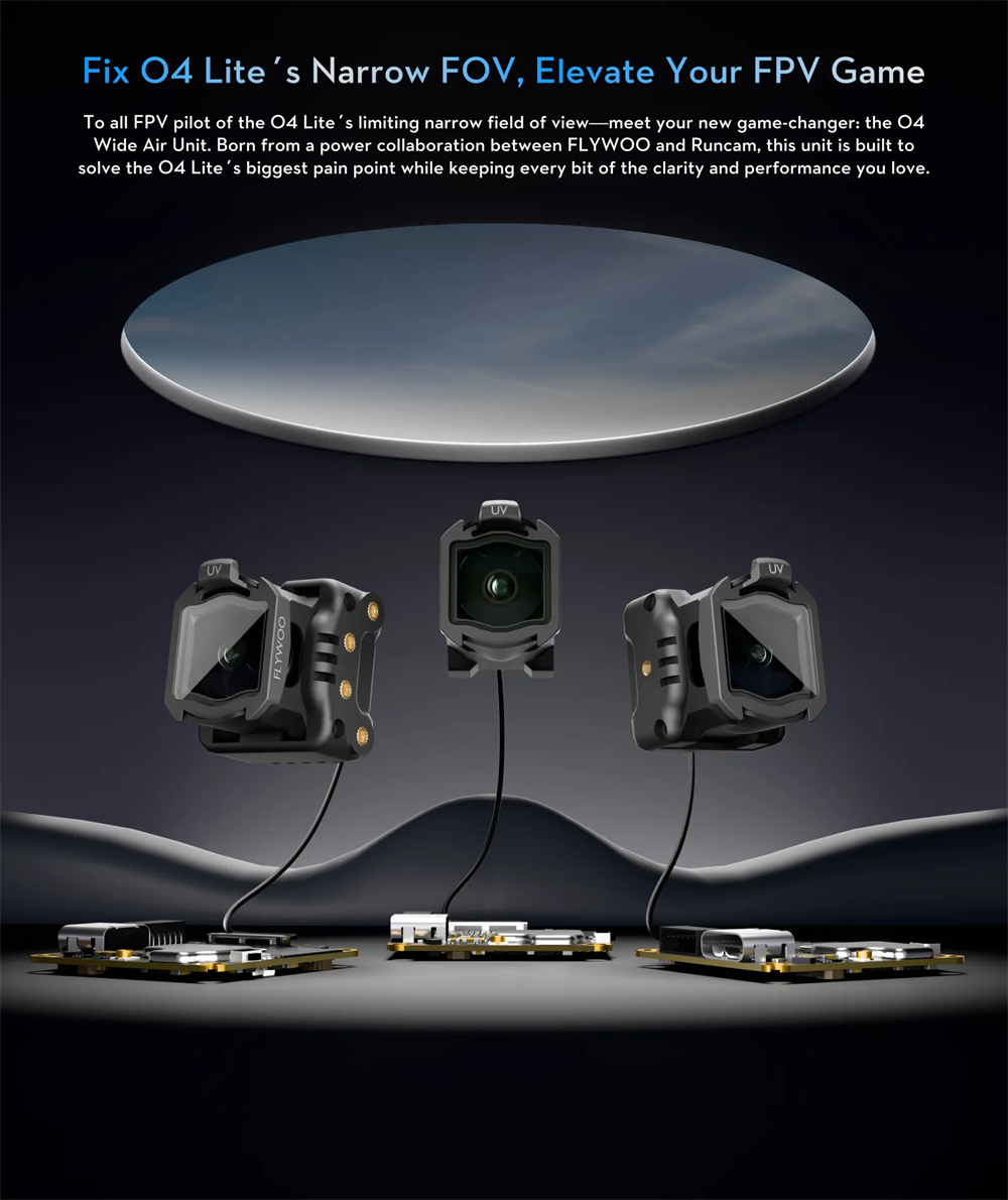For FPV pilots frustrated by the O4 Lite' s narrow field of view, the solution is here: the O4 Wide Air Unit. Developed jointly by FLYWOO and Runcam, it directly addresses this key limitation while maintaining the O4 series' clarity and reliability.