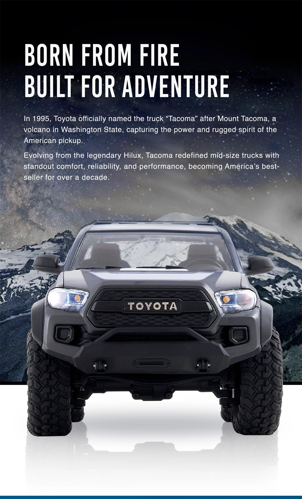 The FMS Tacoma brings the rugged spirit of for Toyota’s legend pickup into the world of RC. This officially licensed 1:24-scale crawler blends true-to-scale design with serious off-road performance in a compact, go-anywhere crawler.