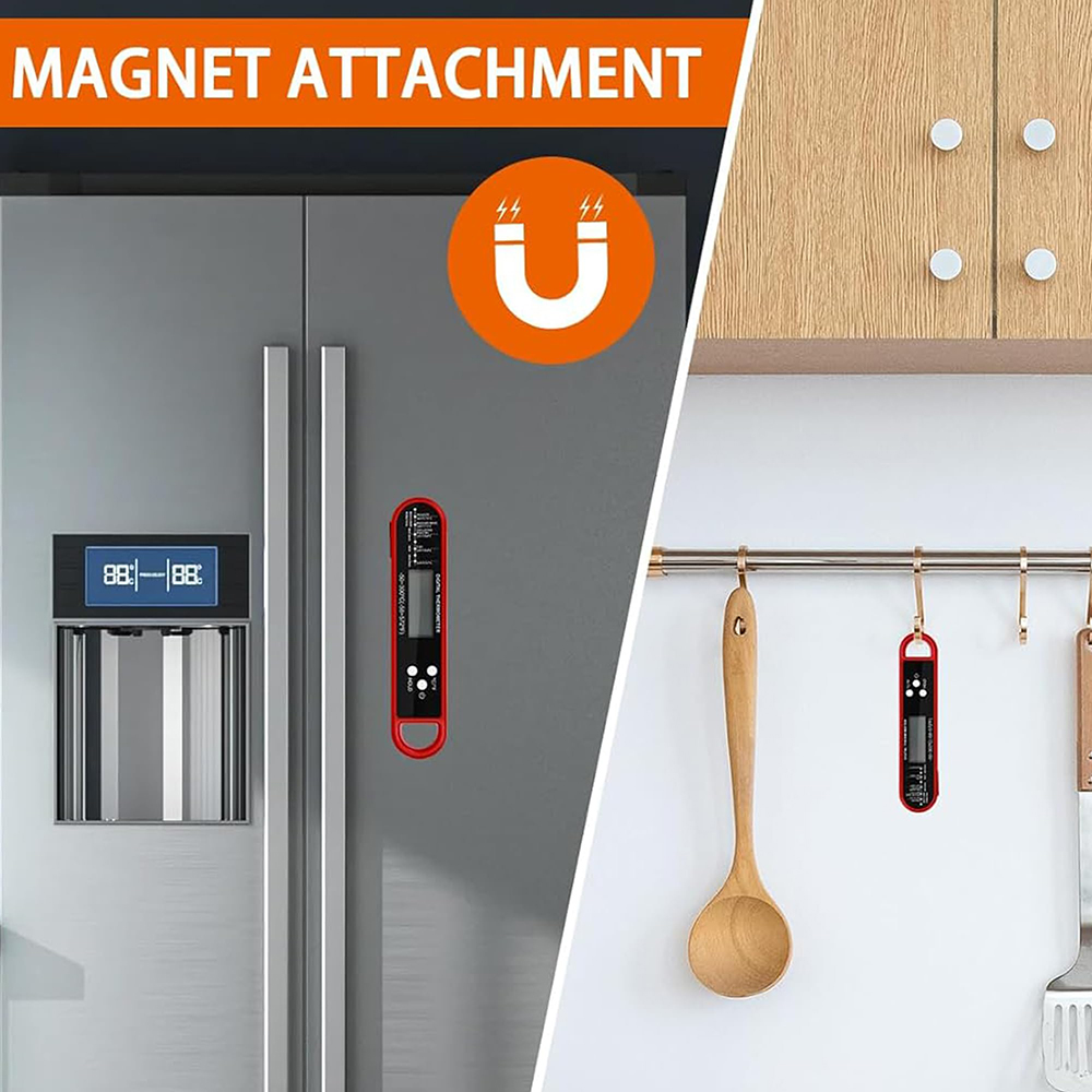 - Magnetic and Hanging Hole Design: Equipped with a built-in strong magnet and a hanging hole, this thermometer can be conveniently stored on your refrigerator or hung on kitchen hooks for easy access.