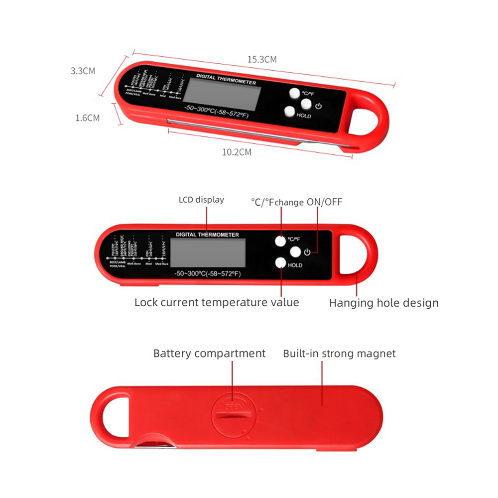 - High Temperature Range: Capable of measuring temperatures from as low as -50°C to as high as 300°C, this thermometer is suitable for a variety of cooking needs, from baking to grilling.