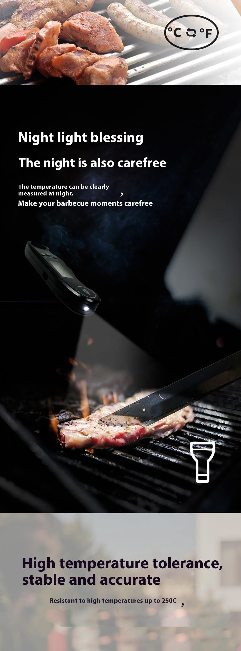 Equipped with a backlit LCD display, you can easily read temperatures in the dark. Perfect for late-night grilling, ensuring consistent results regardless of the time.