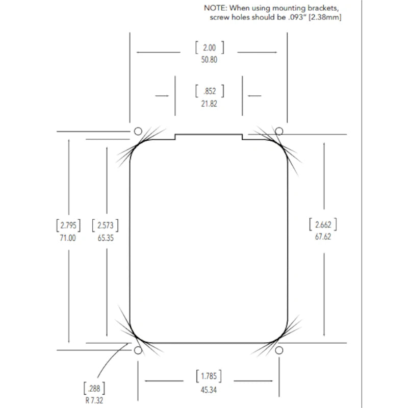 -Screw spacing: 1.785' W x 2.795' L (45.34mm x 71mm)