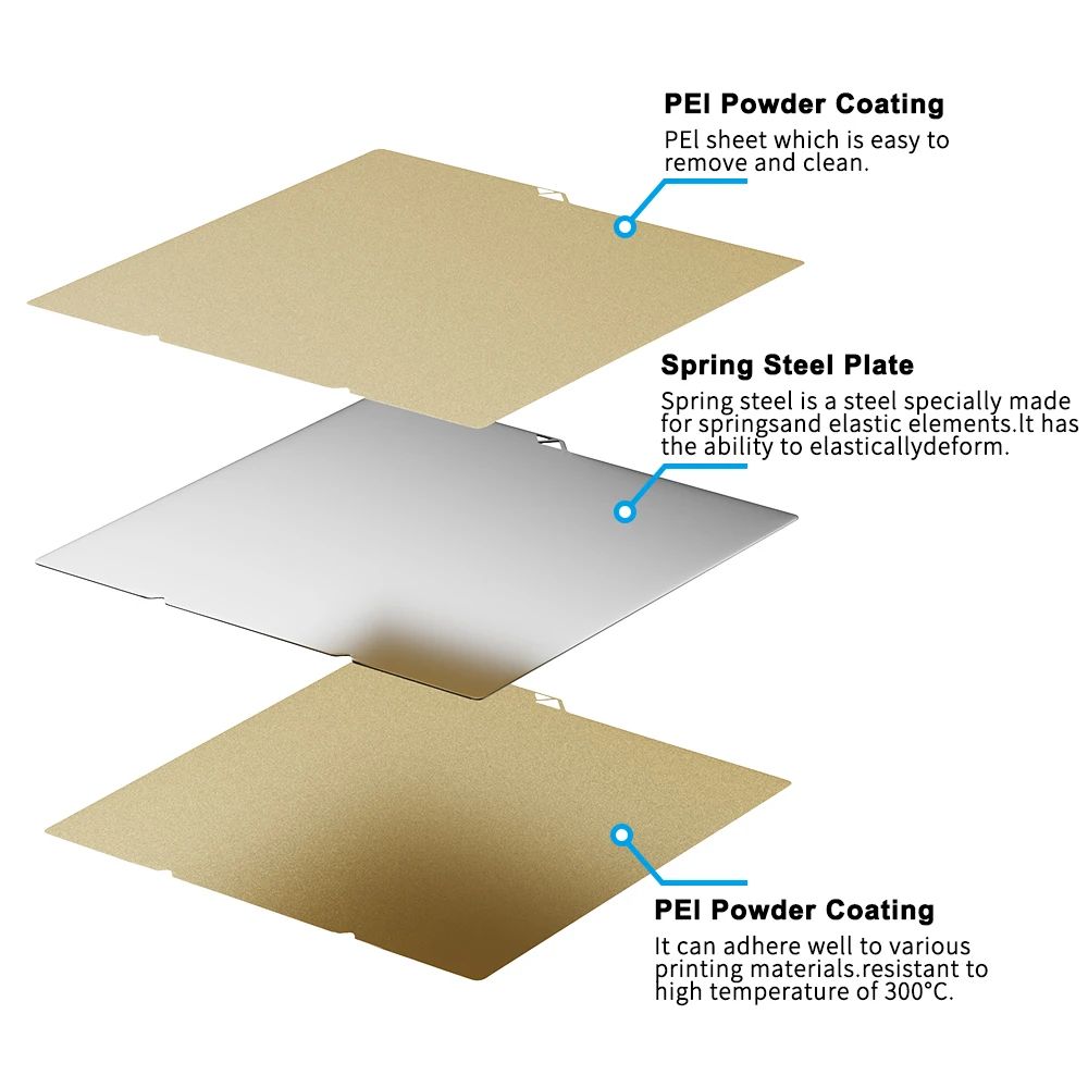 1. Double-Sided Design: Offers smooth PEY or textured PEI surfaces for versatile printing applications.