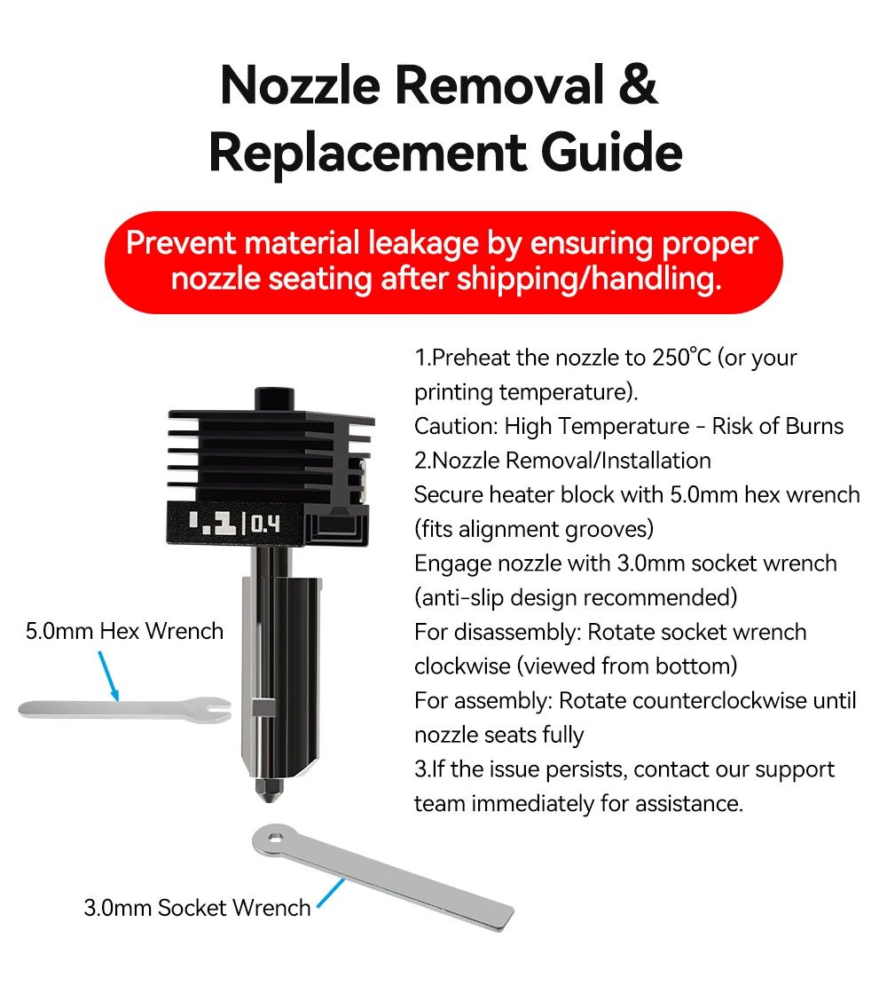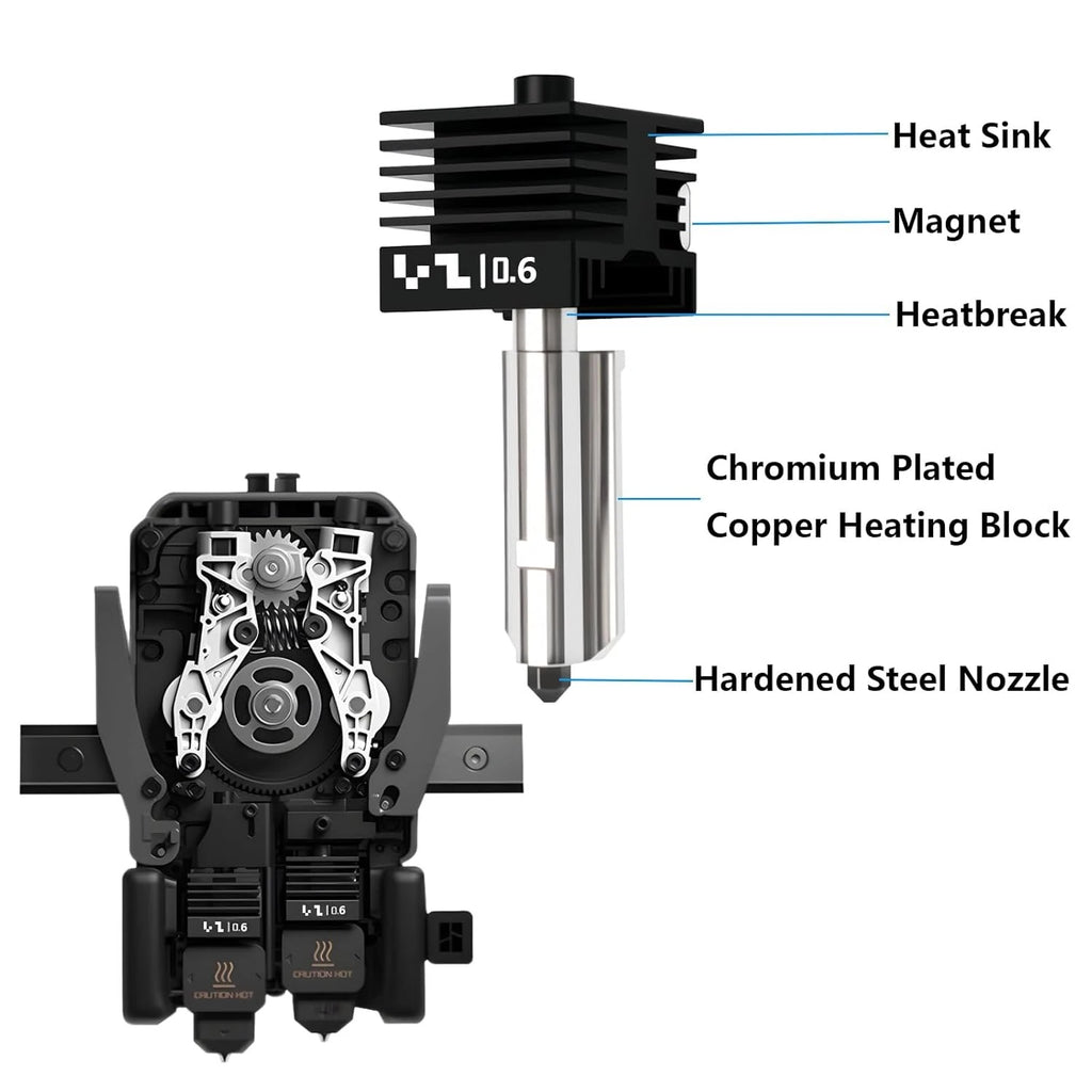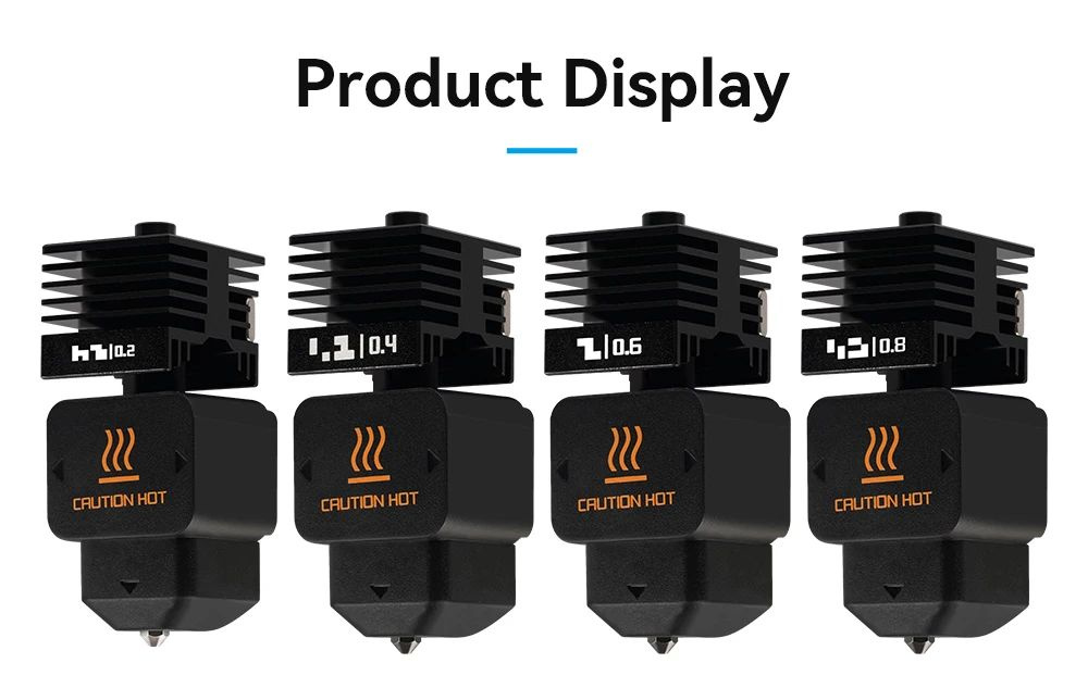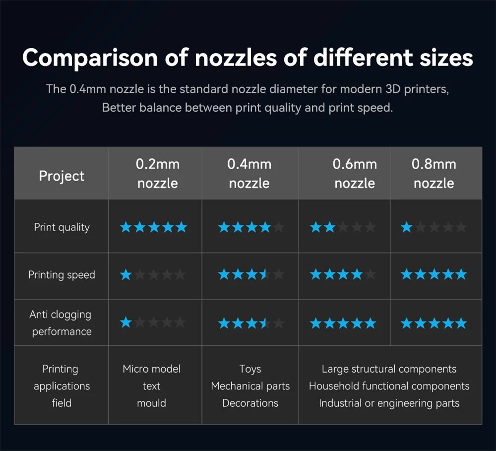 Nozzle Sizes: Available in 0.2mm, 0.4mm, 0.6mm, and 0.8mm