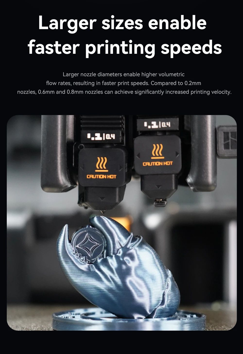 4. Optimized Nozzle Options: 0.2mm provides fine details with high resolution; larger sizes (0.4mm/0.6mm/0.8mm) enable faster printing speeds.