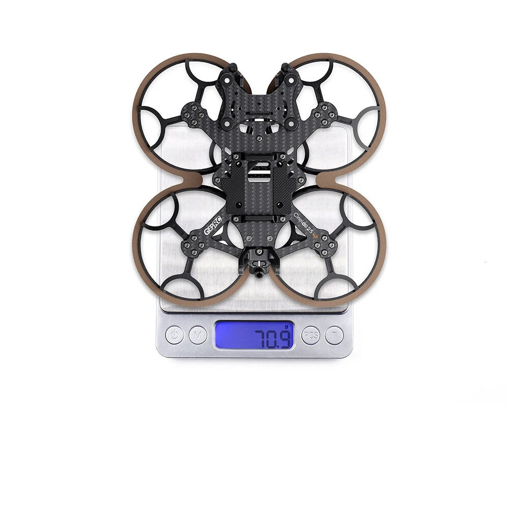 The GEPRC team has comprehensively upgraded and improved the GEP-CL25. It can be equipped with DJI O3 image transmission and bottom-mounted camera damping ball avoids IMU resonance problem and achieves good anti-shake effect. The fuselage uses custom 7075 aviation grade aluminum column, which is lightweight without losing rigidity.