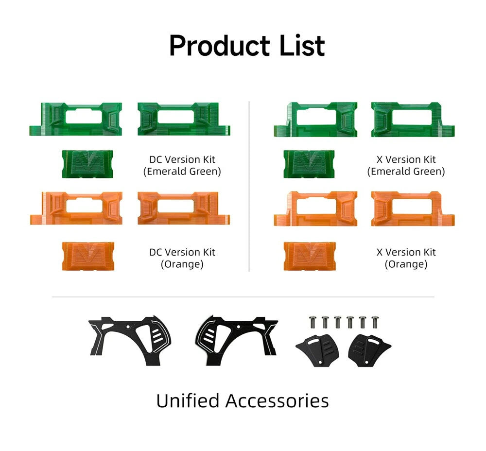 To complement the O4 Air Unit Pro, GEPRC has developed upgrade kits for the MARK5 series, offering solution for both DC and Flat X frames. Available in Orange and Emerald Green. Please note that the mounts for the DC and Flat X frames are distinct.