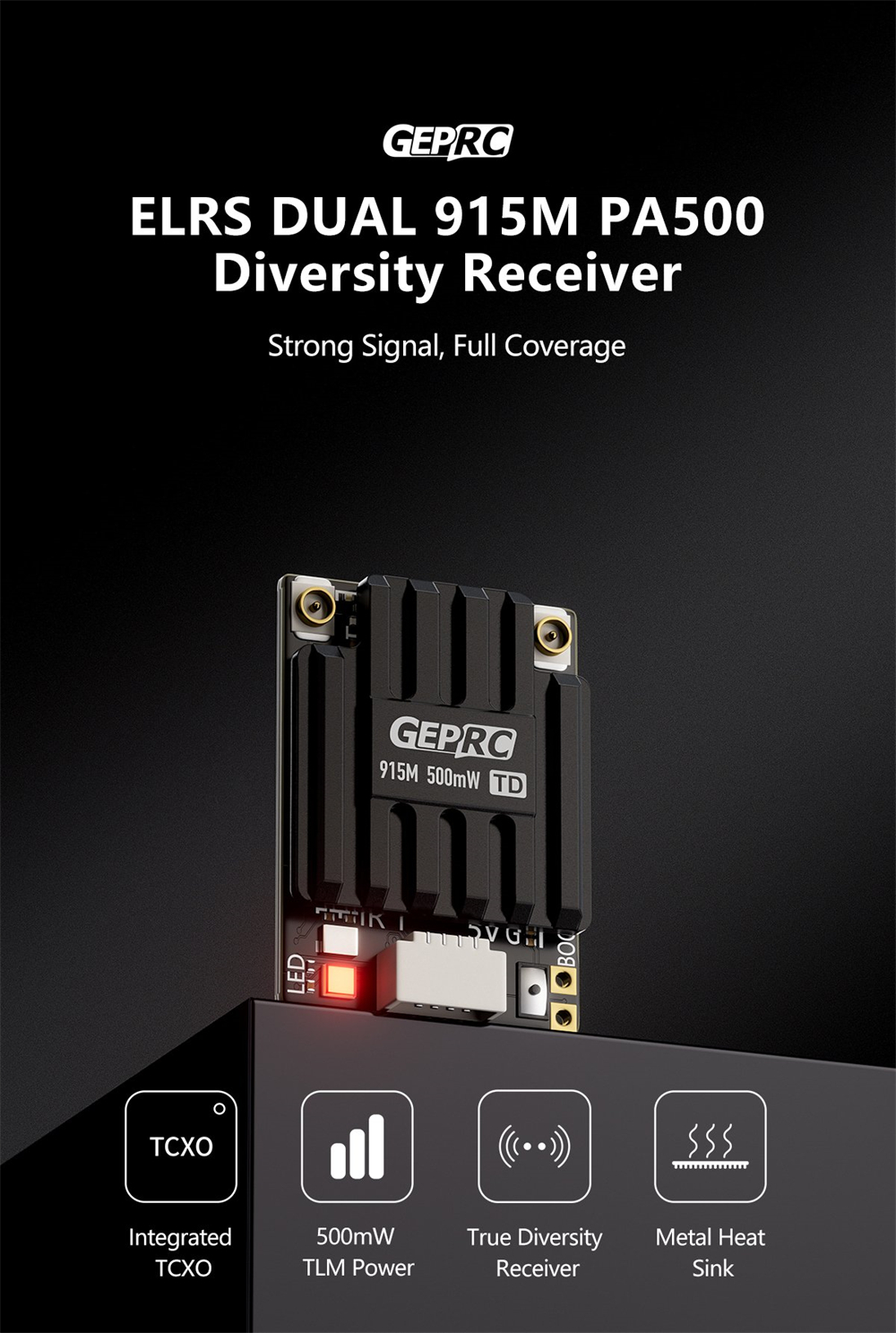 Model: GEPRC ELRS DUAL 915M PA500 Diversity Receiver