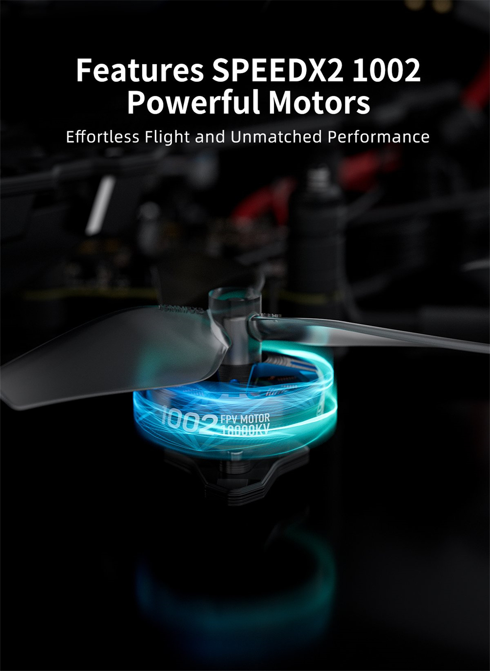 - Equipped with SPEEDX2 1002 motors for a smooth and responsive flight experience.
