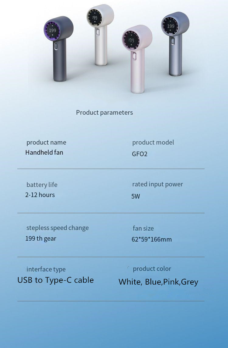 2.【Customizable Wind Speed】This small fan adopts a scroll switch design, and the wind speed can be adjusted steplessly. The portable fan can customize speeds from 1 to 199, meeting your various wind power needs in any scene.