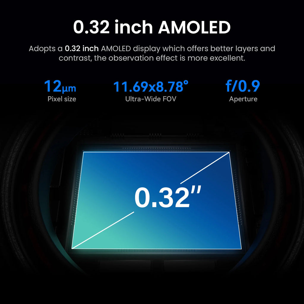 6.0.32inch Micro-OLED(800×600RGB) display screen for easy viewing.