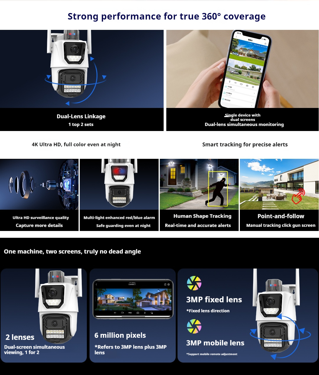 1. 360° Panoramic View: Rotates to capture all areas through an easy-to-control cloud platform.