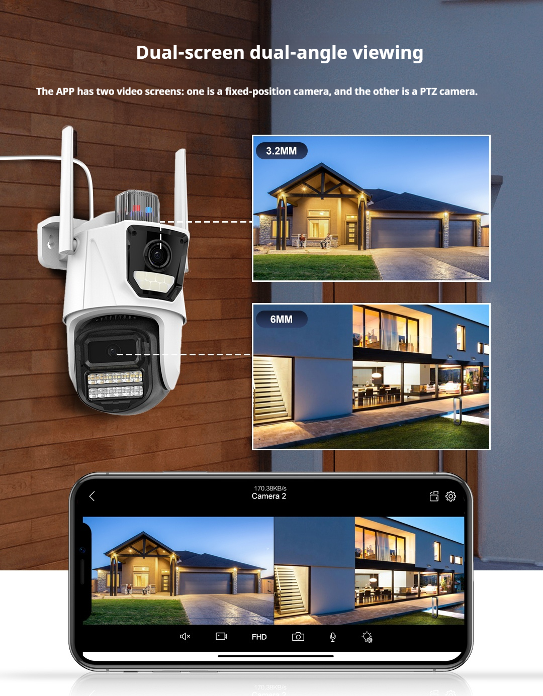4. Dual Real-Time Monitoring: Simultaneous live-feed from fixed position and dome cameras on a mobile app for comprehensive coverage.