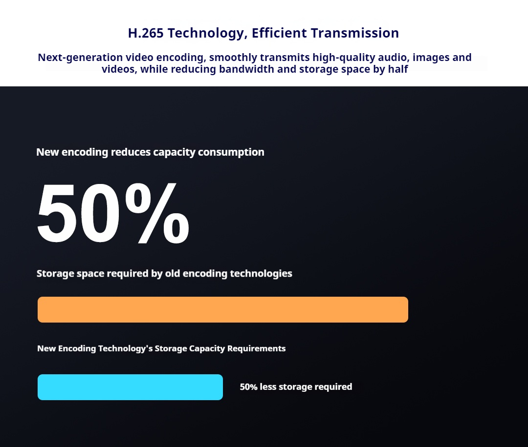 3. H.265 Compression Technology: Efficient video compression reduces storage use by 50% without sacrificing quality.