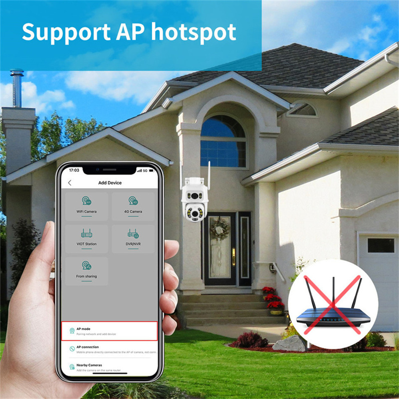 4. Night Detection: Equipped with a floodlight and motion detection system, the camera activates real-time alarms and tracking.
