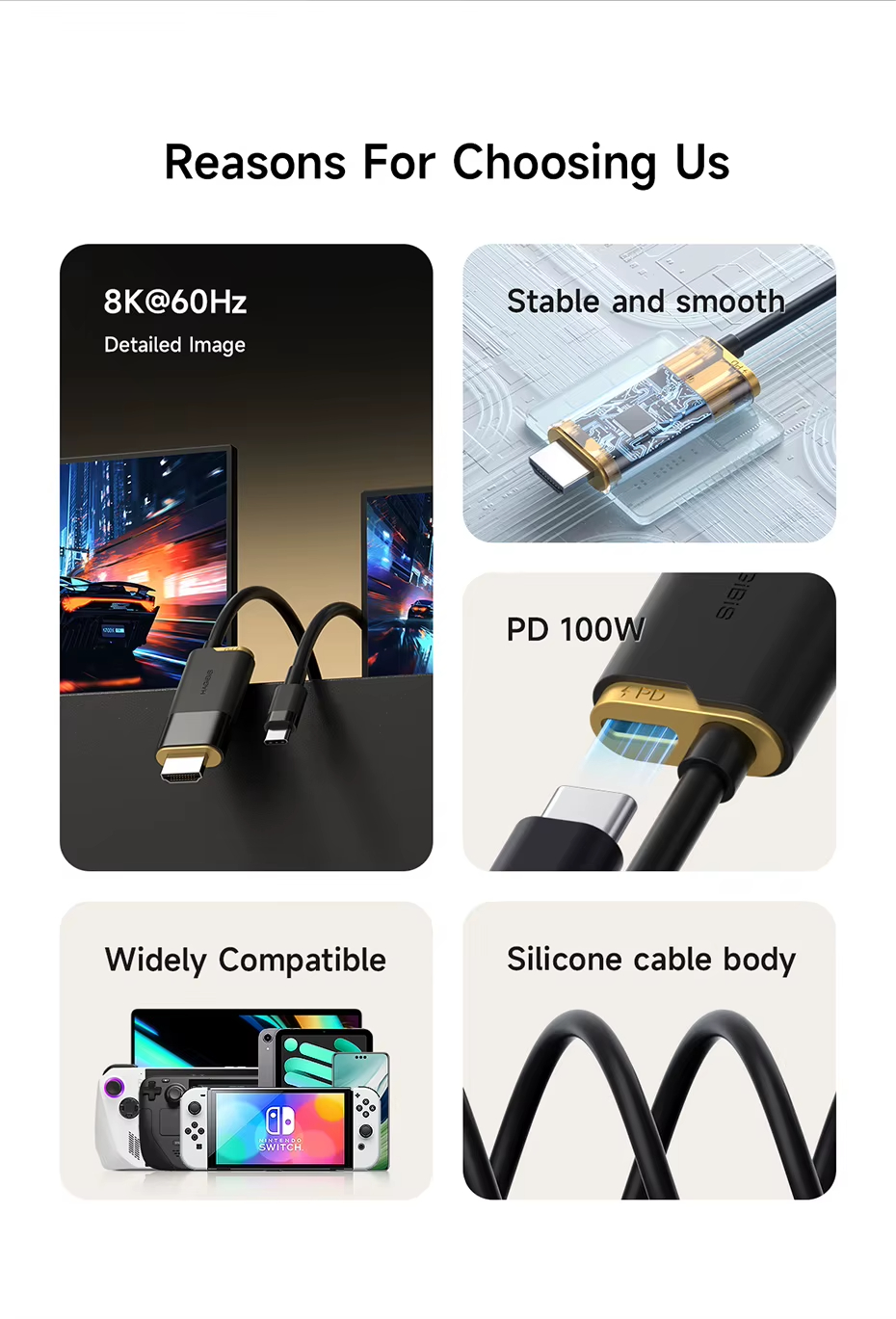 1. Ultra HD 8K/60Hz Resolution: Delivers crisp 8K@60Hz visuals, with backward compatibility for 4K@144Hz or 2K@240Hz displays.