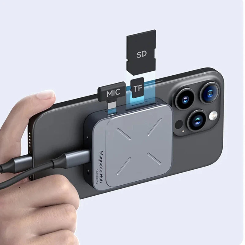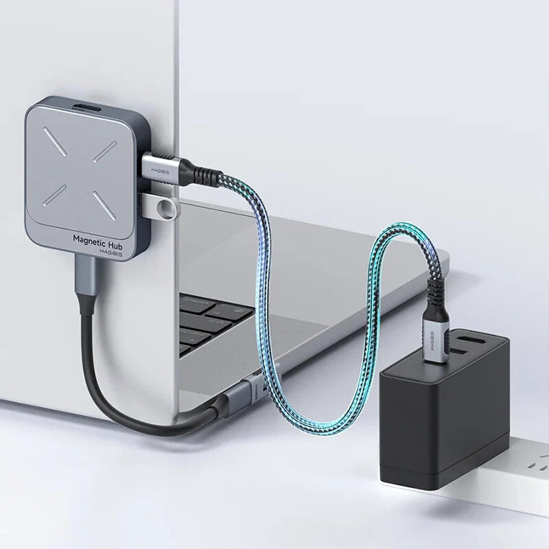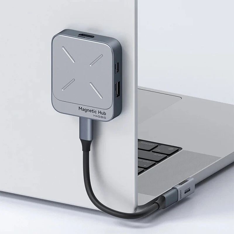 1. All-in-One Solution: The Hagibis 7-in-1 Magnetic USB C hub offers comprehensive connectivity options including 100W PD fast charging, a 4K@60Hz HD port, USB-A and USB-C ports with up to 10Gbps speed, SD and Micro SD card readers, and a 3.5mm audio jack.2. Magnetic Fit with Magsafes: Boasts a built-in magnetic structure for stable and secure attachment to devices. Compatible with Magsafes phone cases, ensuring strong adsorption without falling off.