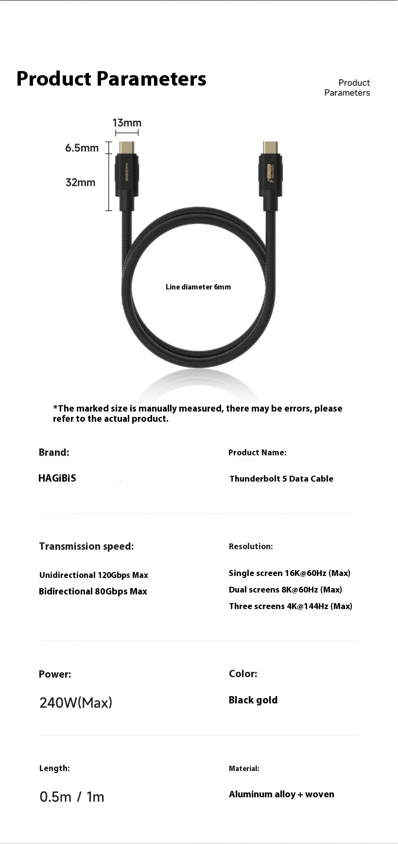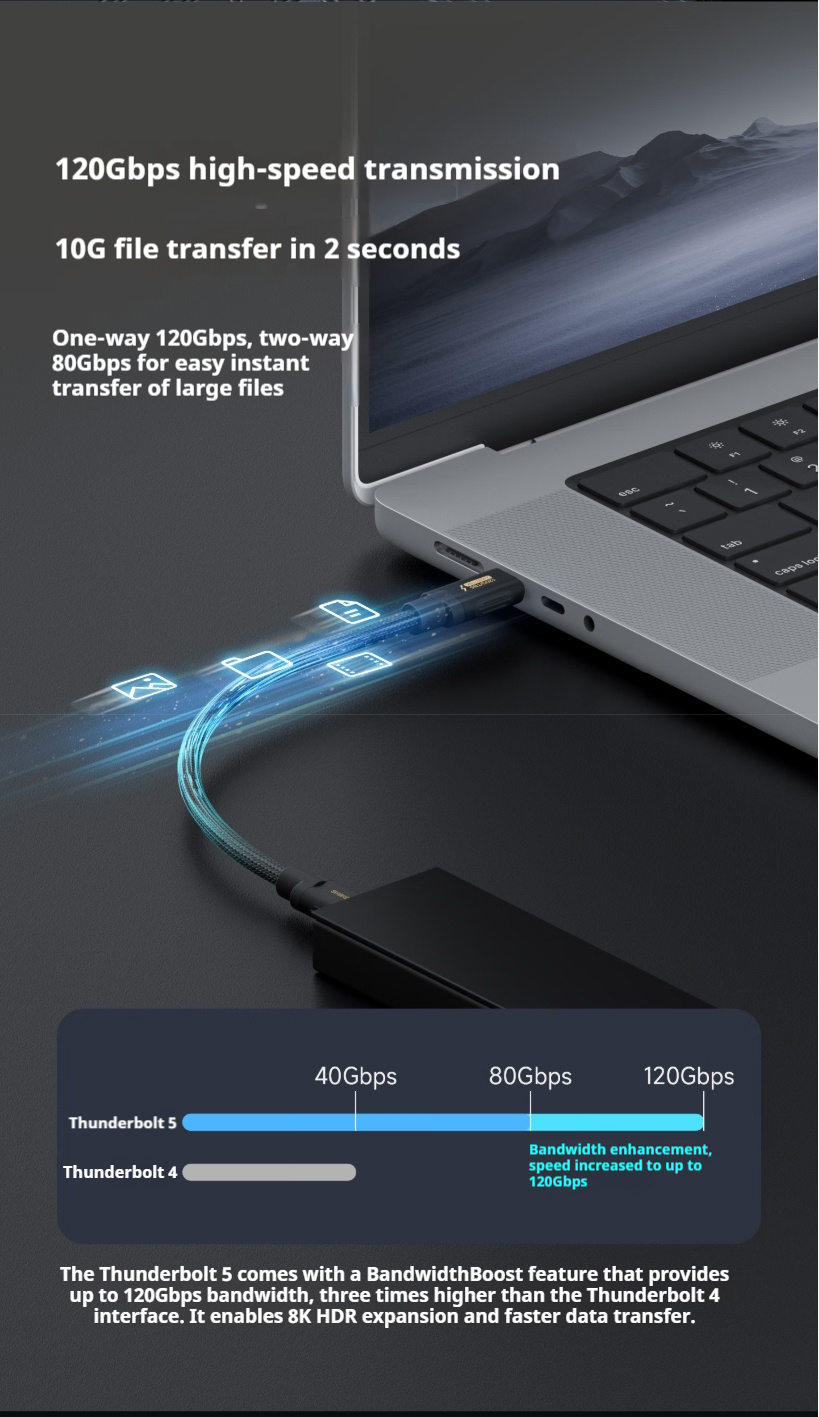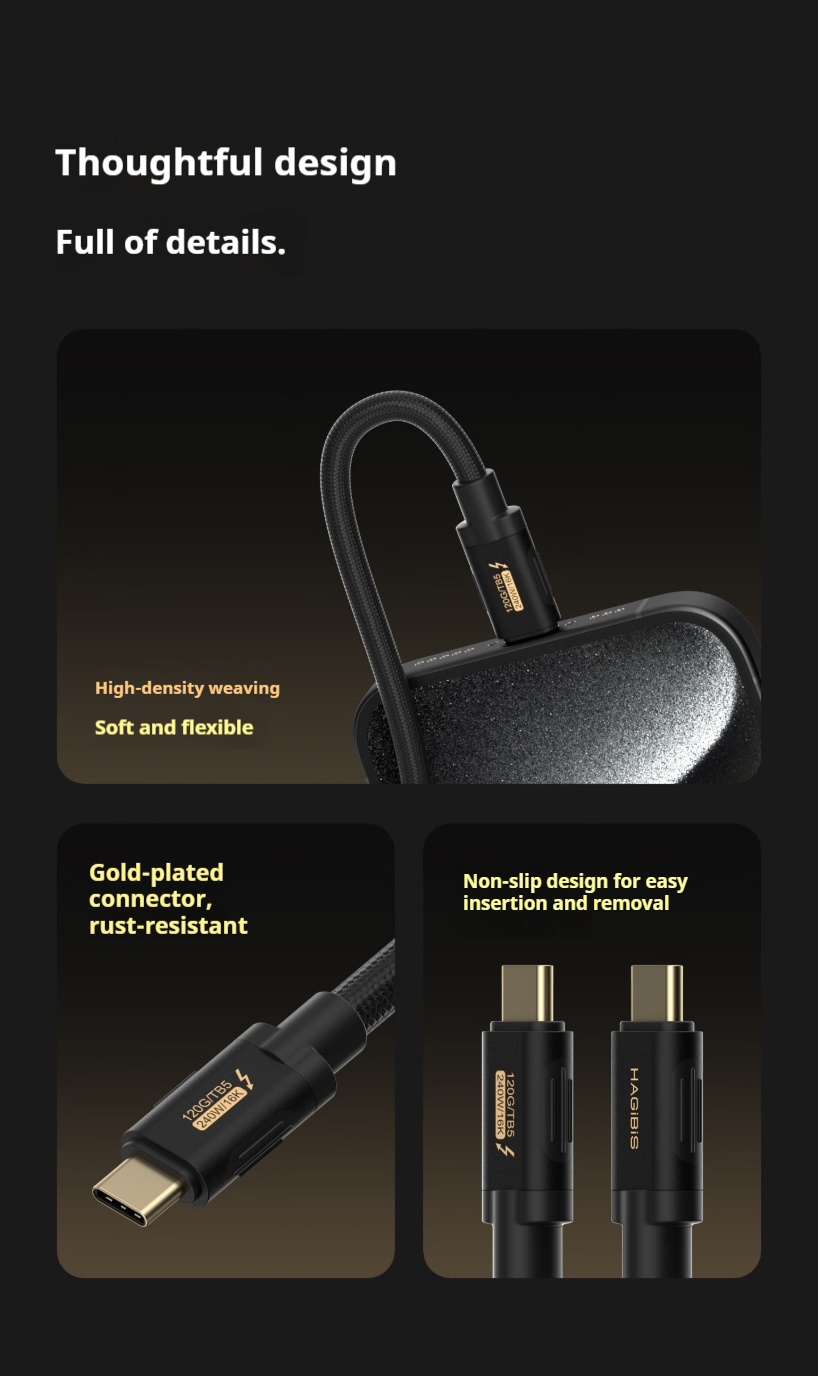1x HAGiBiS Thunderbolt5 Type-C to Type-C Data Cable