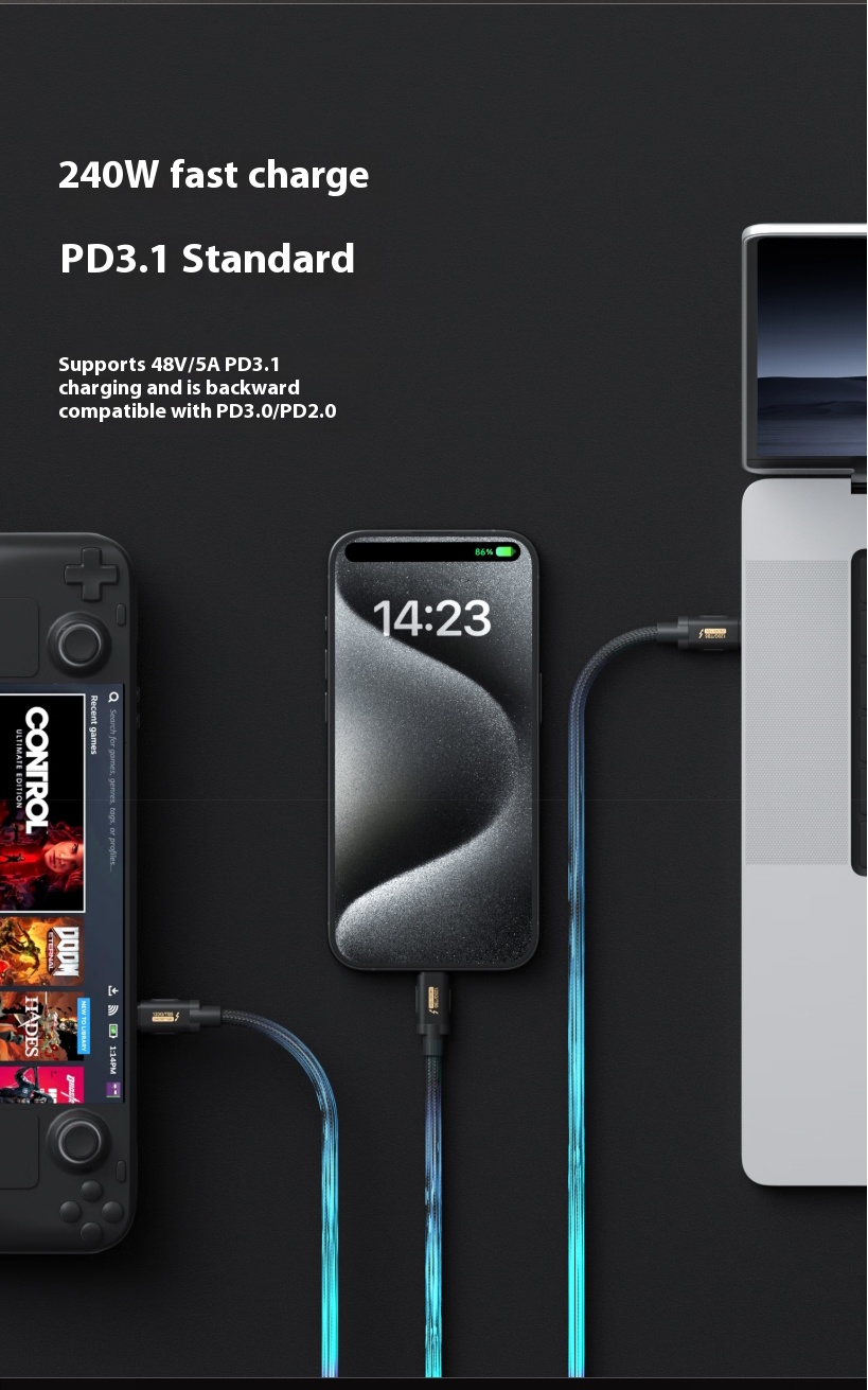 3. 240W Fast Charge: Complies with PD3.1 standards, delivering highly efficient charging for all supported devices.