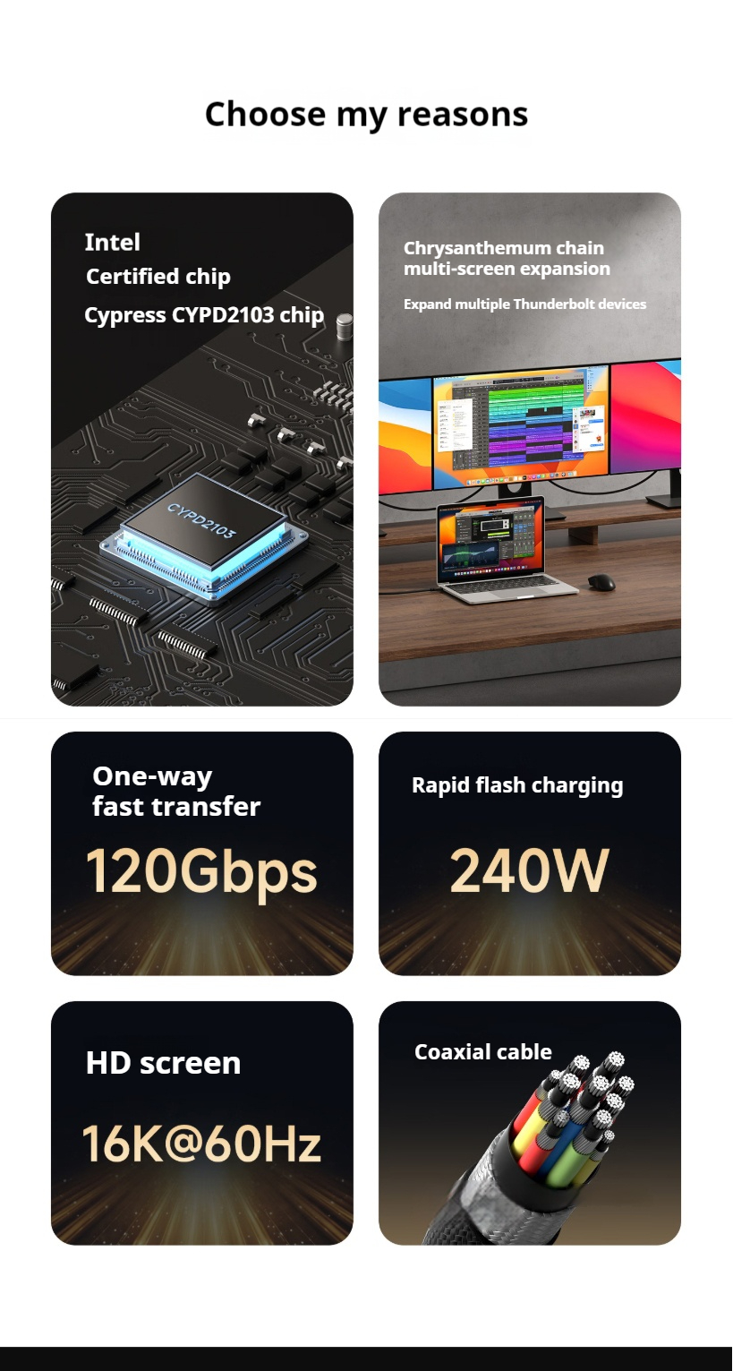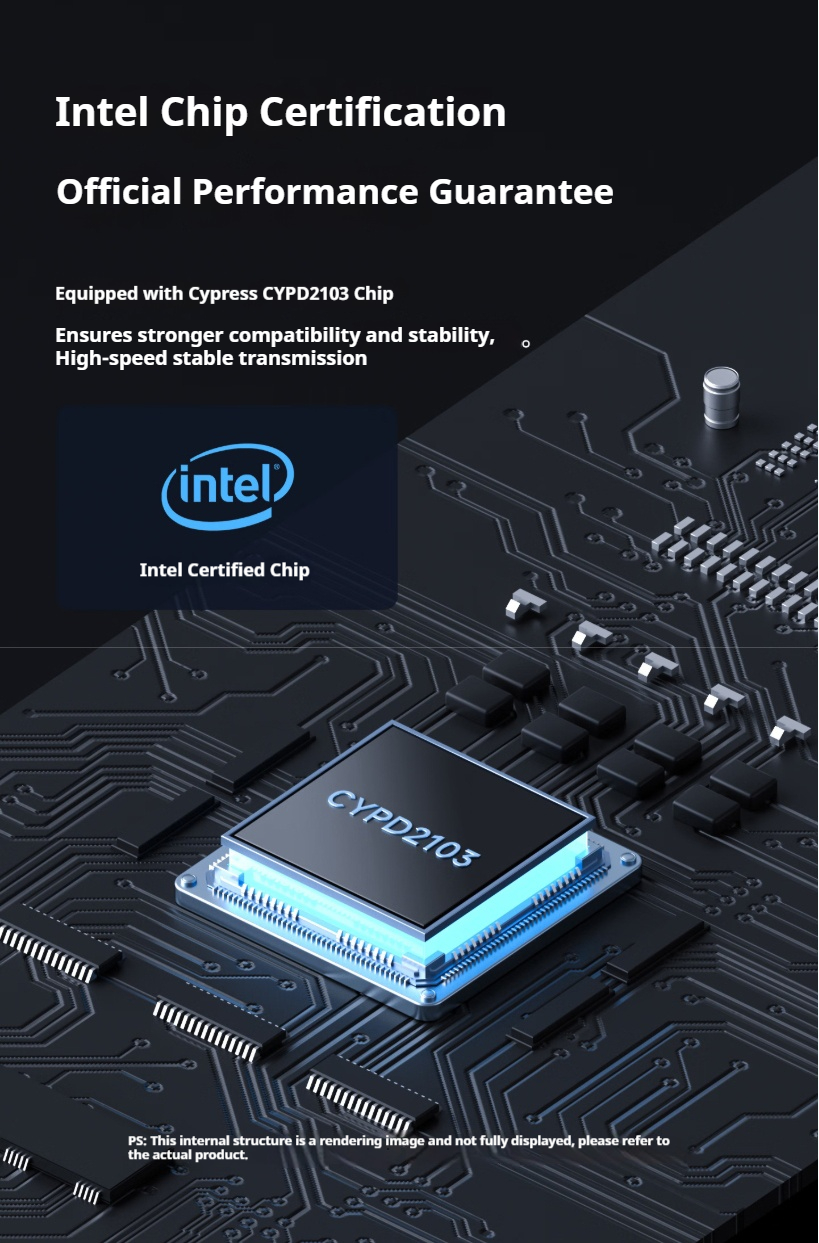 1. Intel Certified Chip: CYPD2103 ensures stable compatibility and enhanced transmission performance.