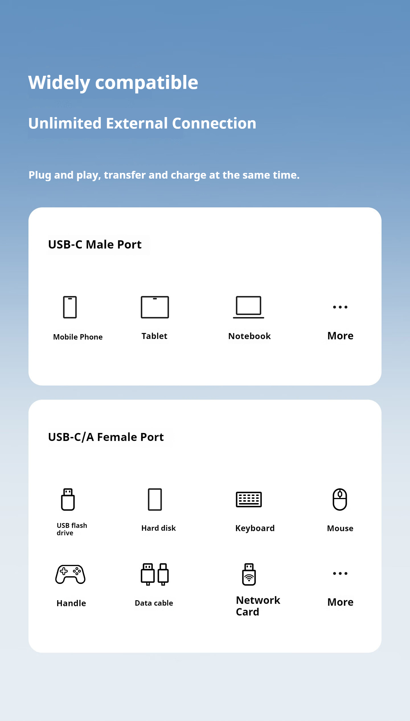 3. Compatibility: Wide device compatibility including laptops, phones, tablets, external hard drives, USB flash drives, keyboards, mice, game controllers, and more.