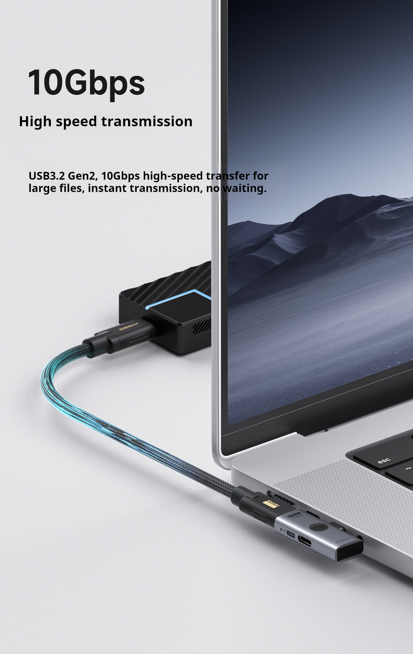 2. High-Speed Data Transfer: Supports USB 3.2 Gen 2 protocol for file transfer speeds of up to 10Gbps. Perfect for transferring large files quickly.