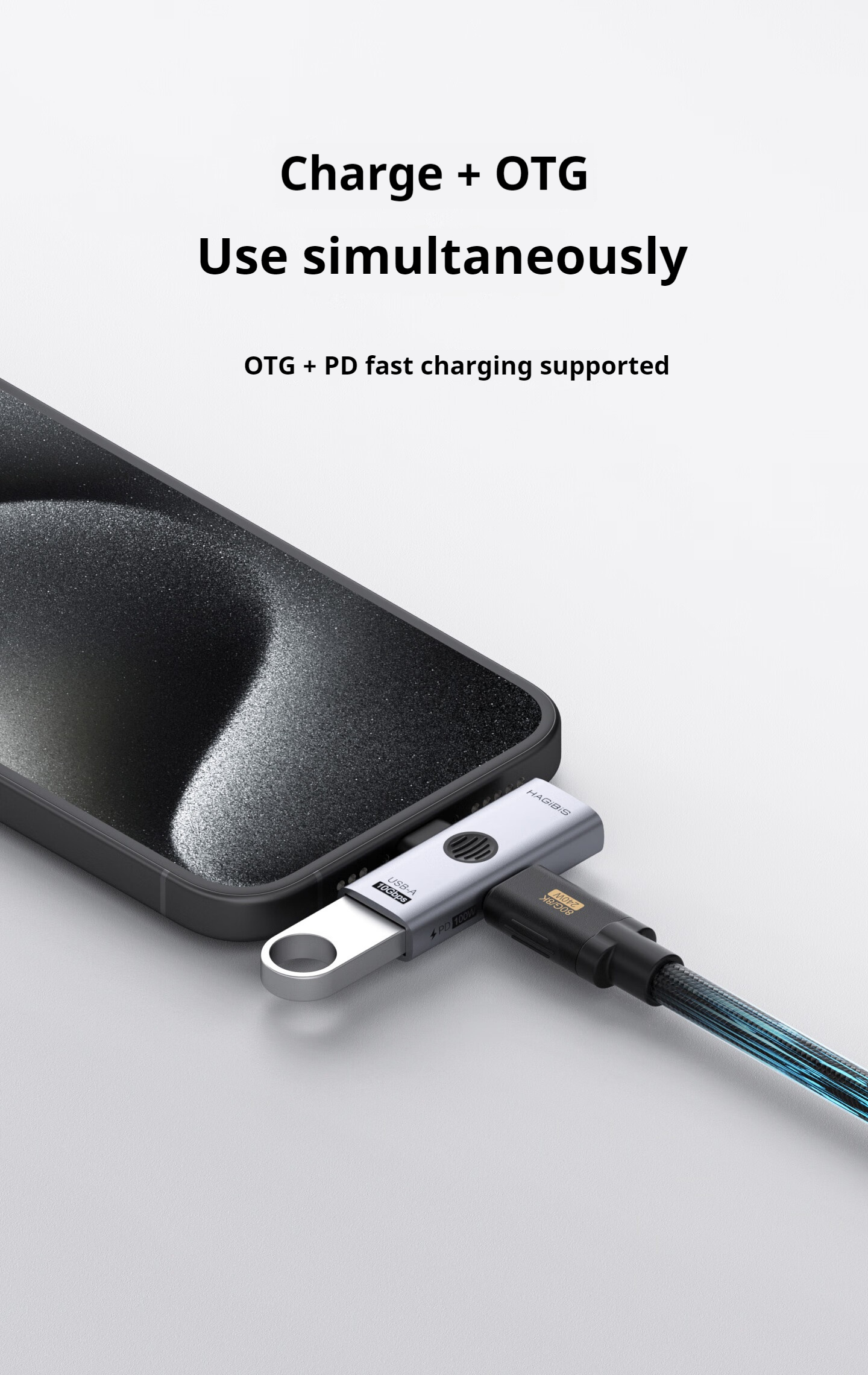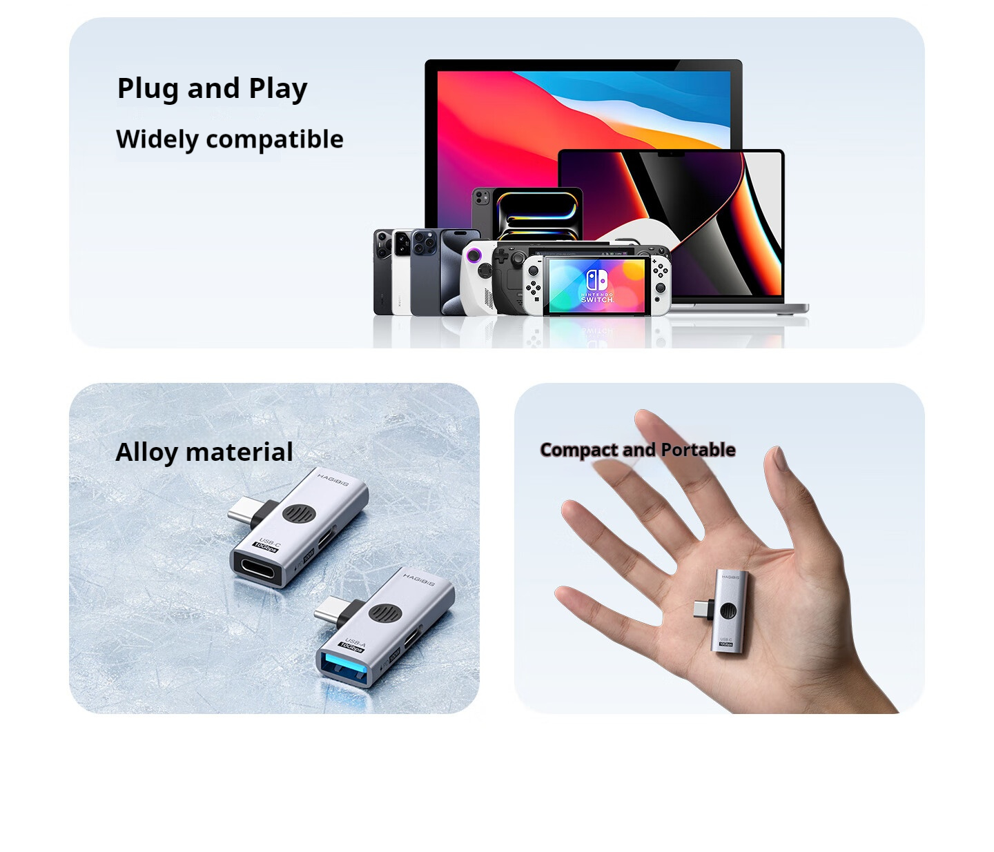 1. Dual-Functionality: Combines a USB-C to USB-A adapter with Power Delivery (PD) support up to 100W for charging while enabling high-speed data transfer.