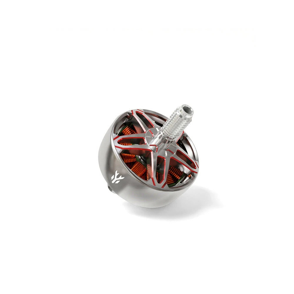The SPECTER 2306.5 motor has a brand-new appearance design. It is made of 7075 high-strength material, which has extremely high strength and impact resistance. At the same time, it uses an anodized two-color process, and the motor has a cool appearance of titanium color + red. For the more important magnetized steel of the motor, we customized N52H arc-shaped magnetic steel, which has ultra-high magnetic properties, high temperature resistance, and smaller spacing (magnetic steel and stator spacing), making the SPECTER 2306.5 motor have extremely high performance and excellent efficiency. In order to ensure the stable operation of the motor during racing, we use super high temperature resistant 260° copper wire windings. In order to further improve the efficiency of the motor, we use silicon steel sheets to make the stator to reduce heat loss. In addition, we optimize the tuning of the magnetic circuit and winding to make the power output of the motor more linear and the response fast and accurate.