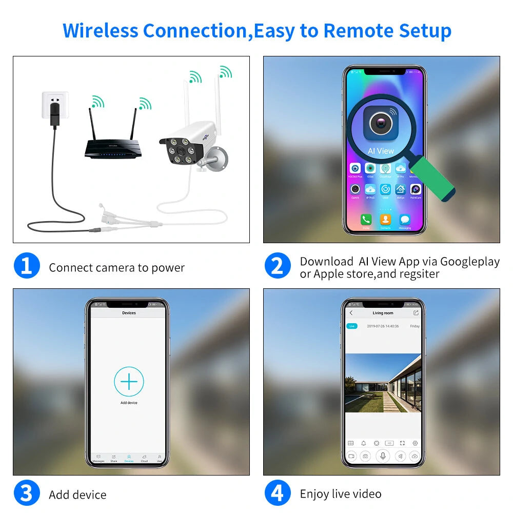 Features:- 3 Night Vision Mode--Full Color & Infrared & Inteliget Night Vision For Option- 2.4G WIFI Connection- Motion Detect & App Alarm- Two-way Audio with Speaker and Microphone- 3MP Outdoor Waterproof WIFI IP Camera- Built-in Slot to Put TF Card For Storage- Wireless Connection,Easy to Remote Setup- Share with other people to Live ViewPackage Included:1 x 3MP WIFI Security Camera 3MP1 x Camera Bracket1 x Installation Bags1 x Power Adapter1 x 1 meter Netwwork Cable1 x Operation Manual