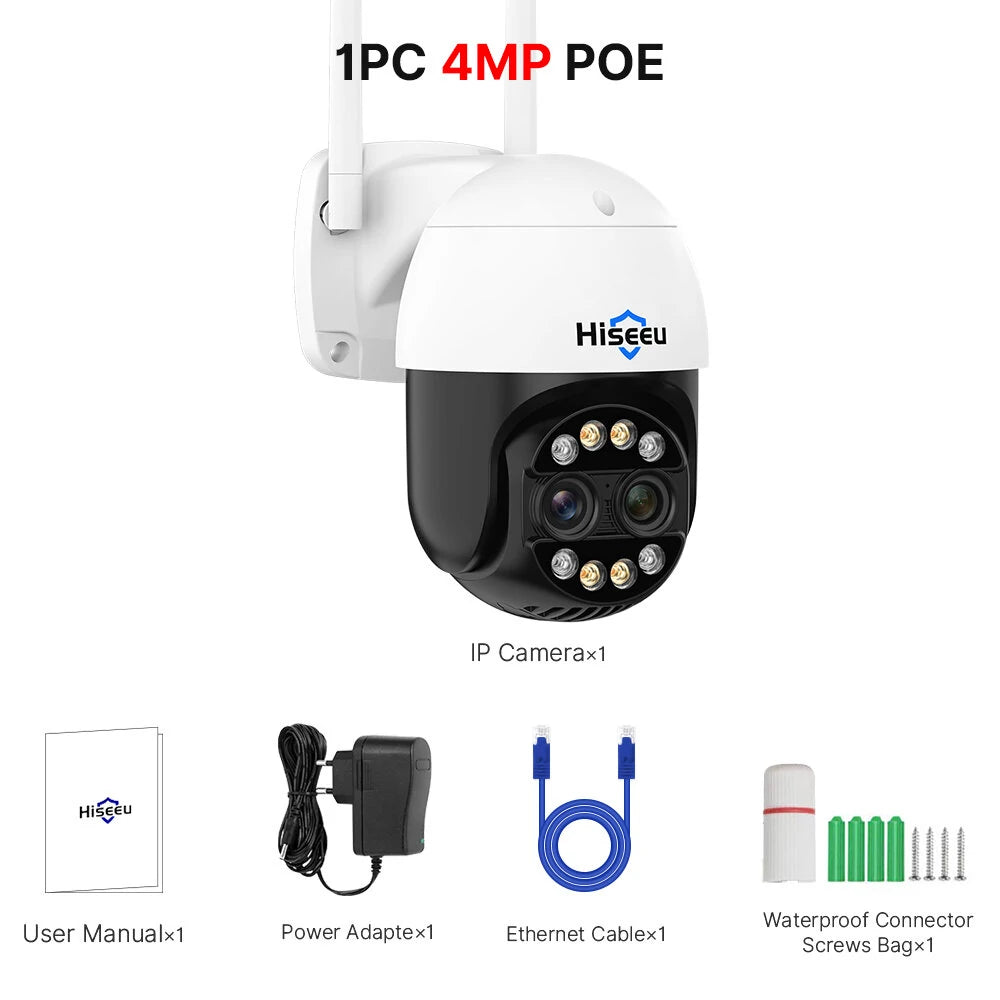 Hiseeu security camera have wide-angle lens and long focal length lens, which support 8x Hybr1d optical zoom to capture a further view. When the warning area is too far away, you can choose the zoom function to get more details than single lens security camera.