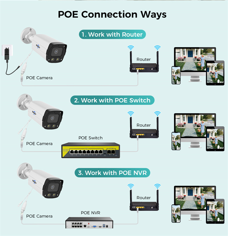6. Versatile Connection Options: Compatible with router, PoE switch, or PoE Network Video Recorder (NVR).