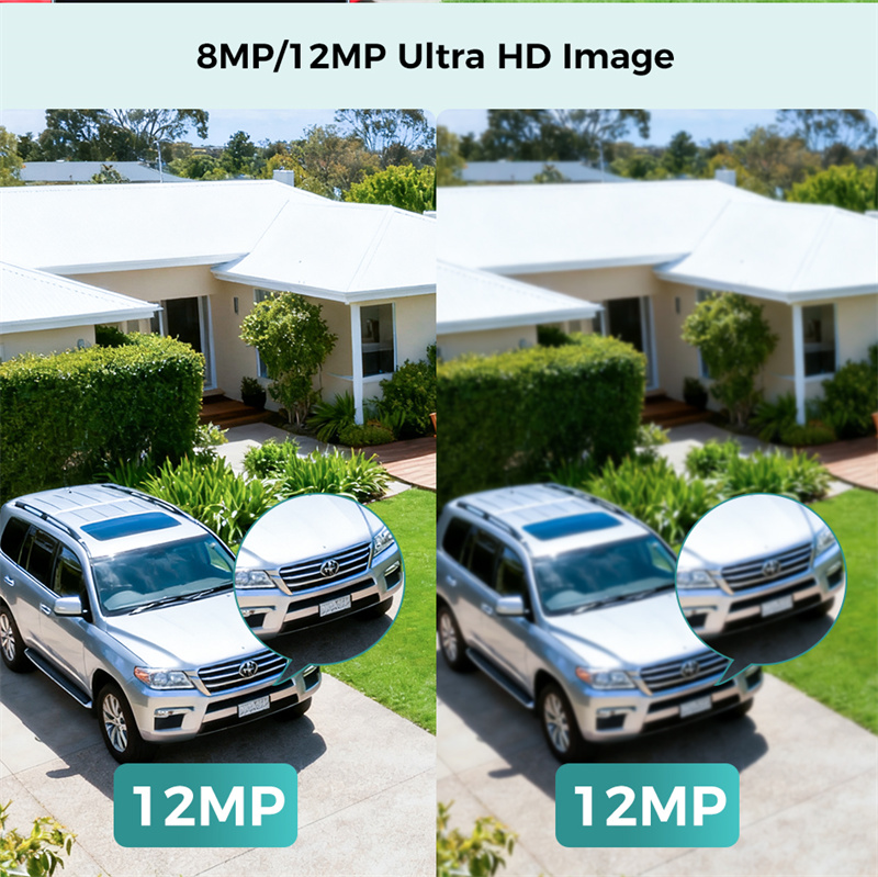 8MP camera is compatible with 8MP NVR, while 12MP camera is compatible with 12MP NVR.