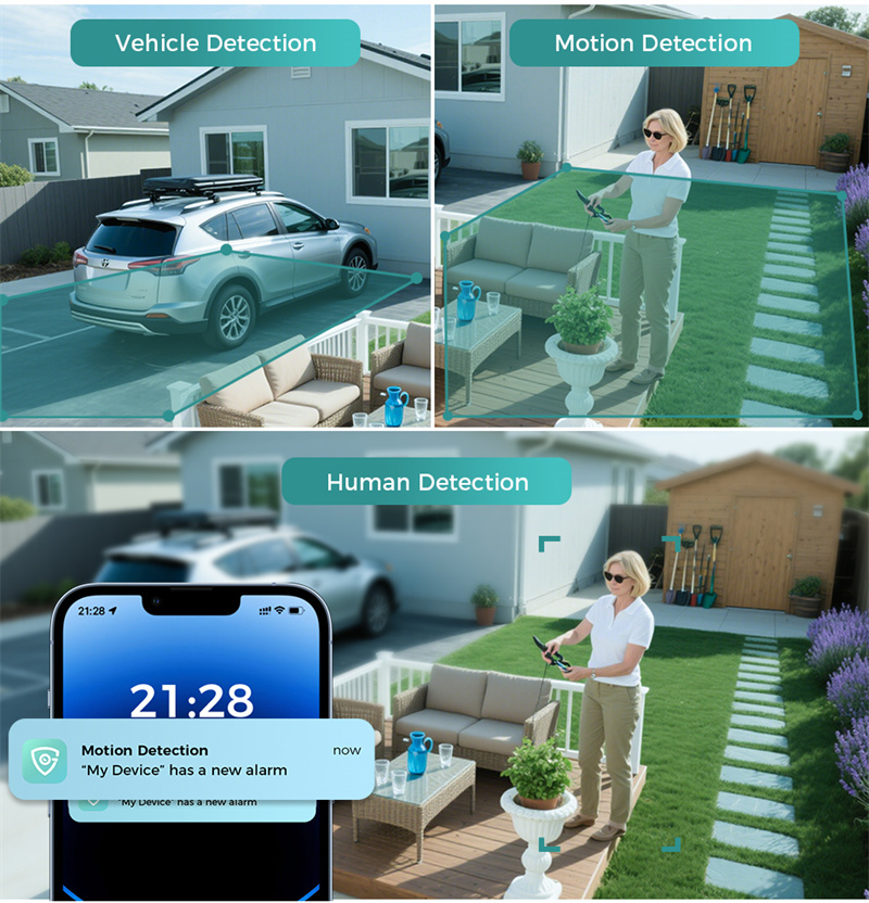 2. Intelligent motion detect for humans and vehicles, with real-time alerts.
