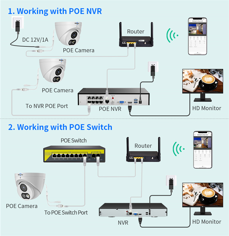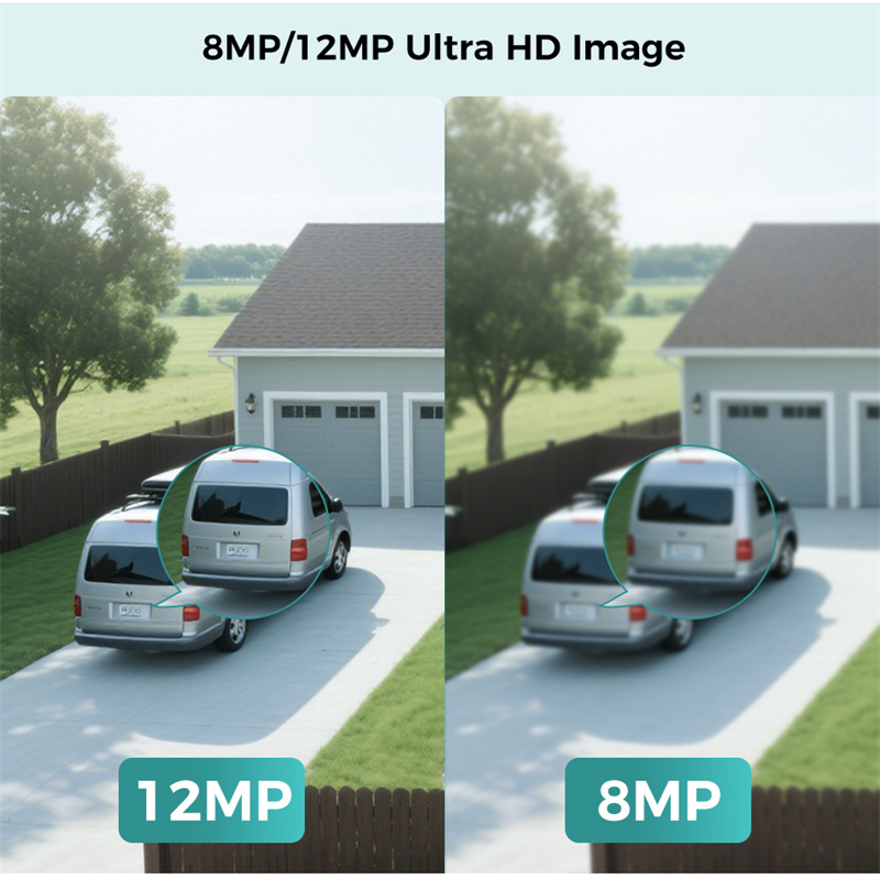 8MP camera is compatible with 8MP NVR, while 12MP camera is compatible with 12MP NVR.