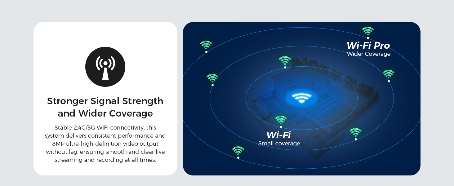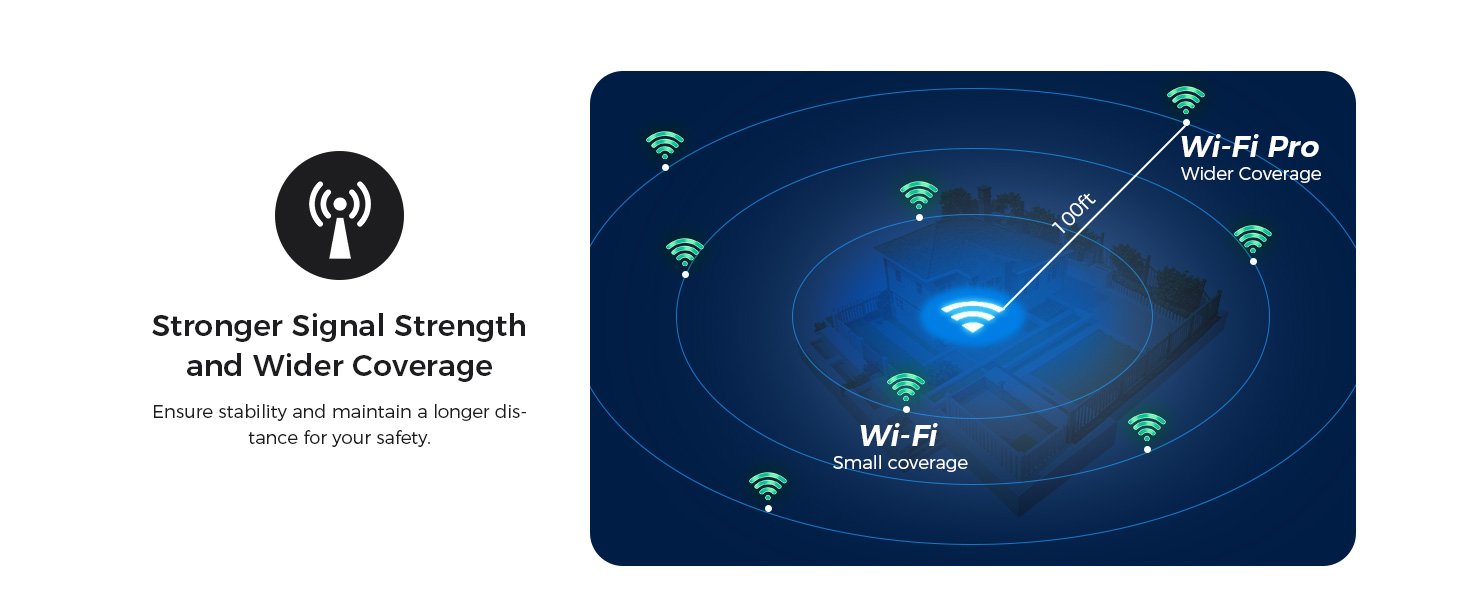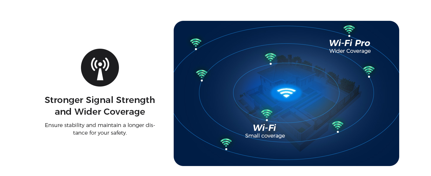 4. WiFi Pro Coverage: Enhanced signal strength provides stable connectivity and wider coverage for live streaming and recording without lag.