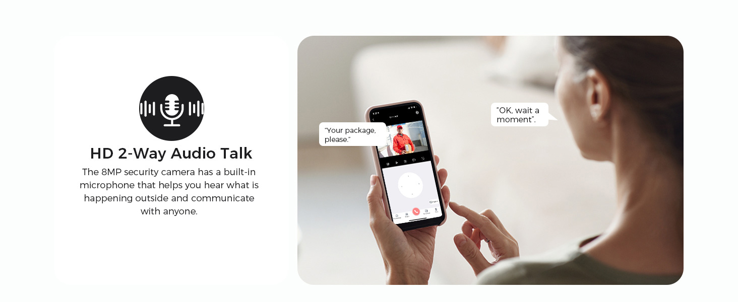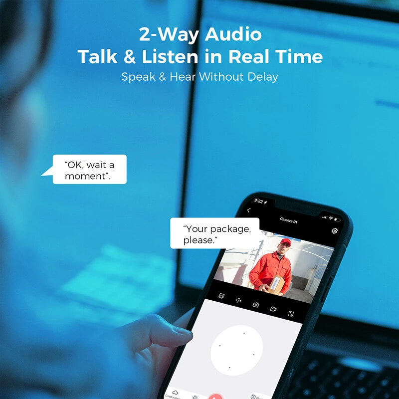 3. Two-Way Audio Talk: The built-in microphone allows real-time communication to enhance security and convenience.